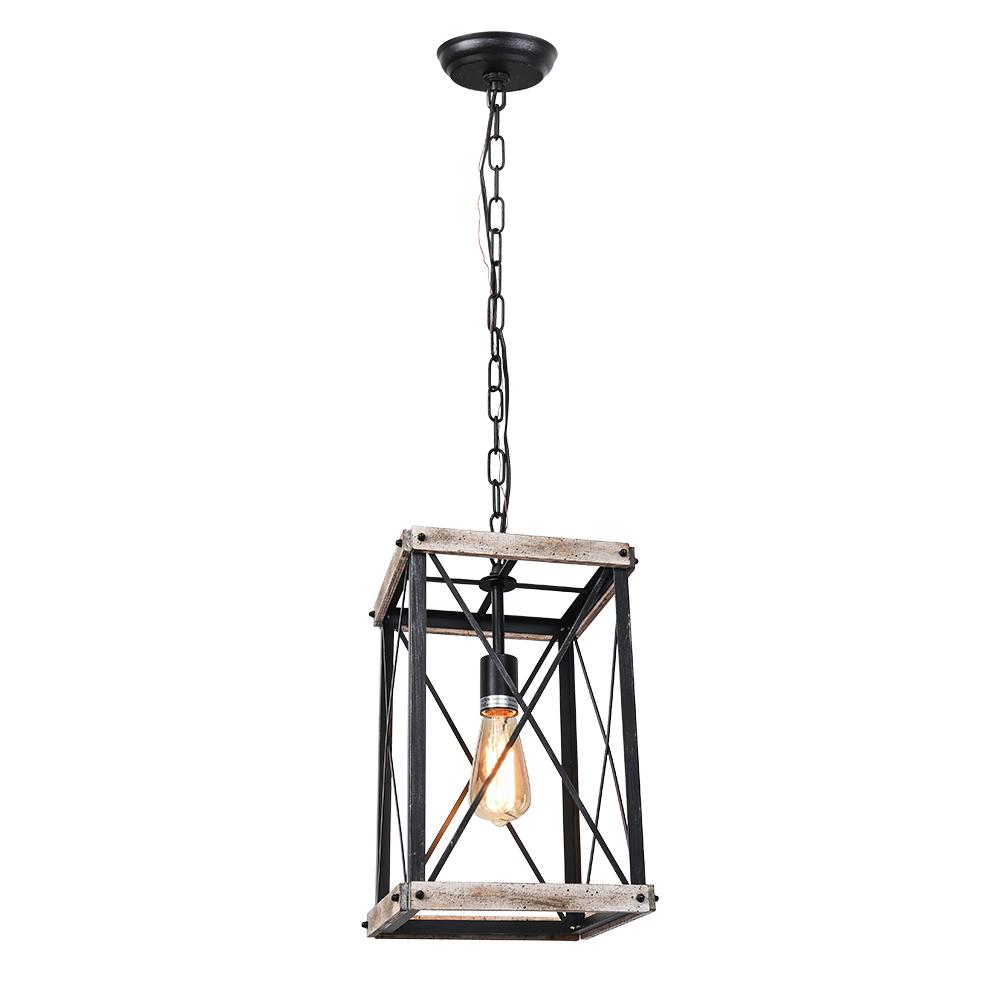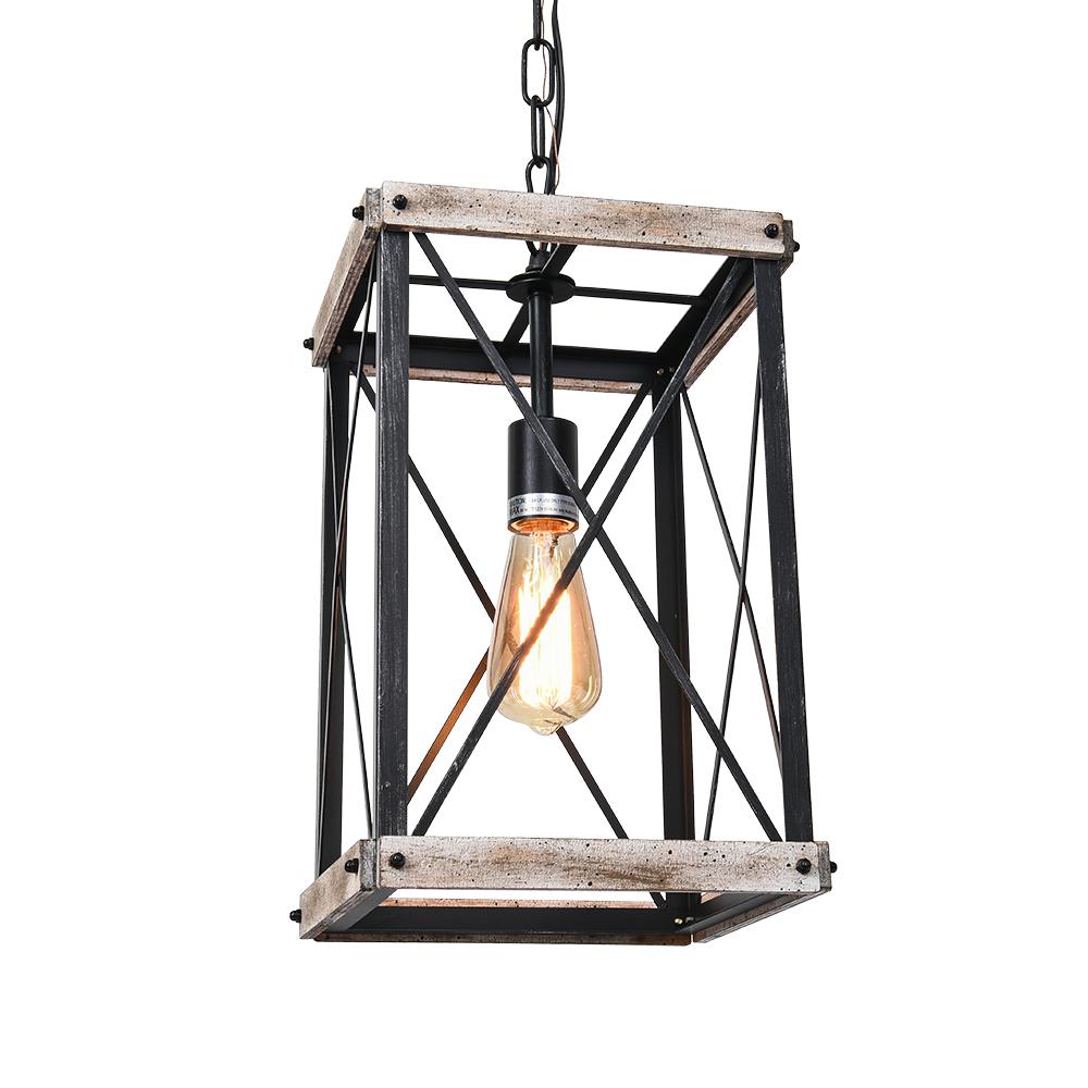 A brushed black finish metal square frame ornamented with antiqued wood details comes into this rustic box hanging light. Inside the open box is ensconced one 60W E26/E27 medium-base bulb (not included) to diffuse task lighting. The hanging chain adds some industrial accents to a wood pendant light while allowing you to customize the suspension height. This wood square pendant light is the perfect choice for illuminating indoor areas like the kitchen island, dining room, living room, and foyer.