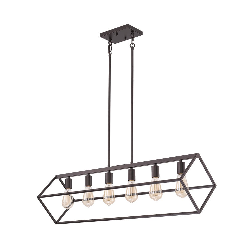 Six Lights • Open Geometric Frame • Slant Rectangle Cage • Oil Rubbed Bronze Finish • E26 Medium-Base Bulbs (Not Included) • Hardwired • ETL