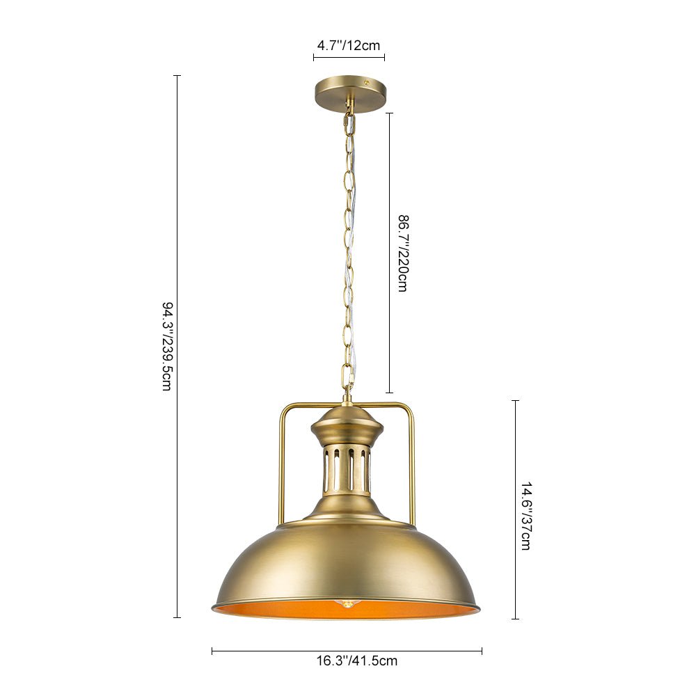 Blending industrial charm with understated luxury, this farmhouse single kitchen pendant light features a classic dome silhouette inspired by vintage pot lids, reimagined with a refined brushed brass finish. The smooth, curved shade showcases timeless craftsmanship, while the warm metallic tone adds a hint of mid-century elegance. Perfect for both traditional and modern interiors, this iron dome pendant light works beautifully in a variety of settings—hang in multiples over a kitchen island, dining table, or home bar for cohesive symmetry, or use individually to brighten a reading nook, bathroom vanity, kitchen sink, laundry area, or cozy living space.