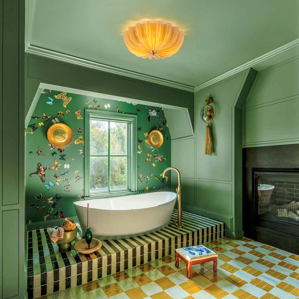 The mocha brown glass option offers a richer, grounded elegance. Deep and glossy with subtle translucence, this scalloped glass ceiling light evokes vintage charm and cozy sophistication, pairing beautifully with classic, eclectic, or softly modern interiors. When illuminated, it creates a warm, enveloping ambiance that feels intimate and reassuring.