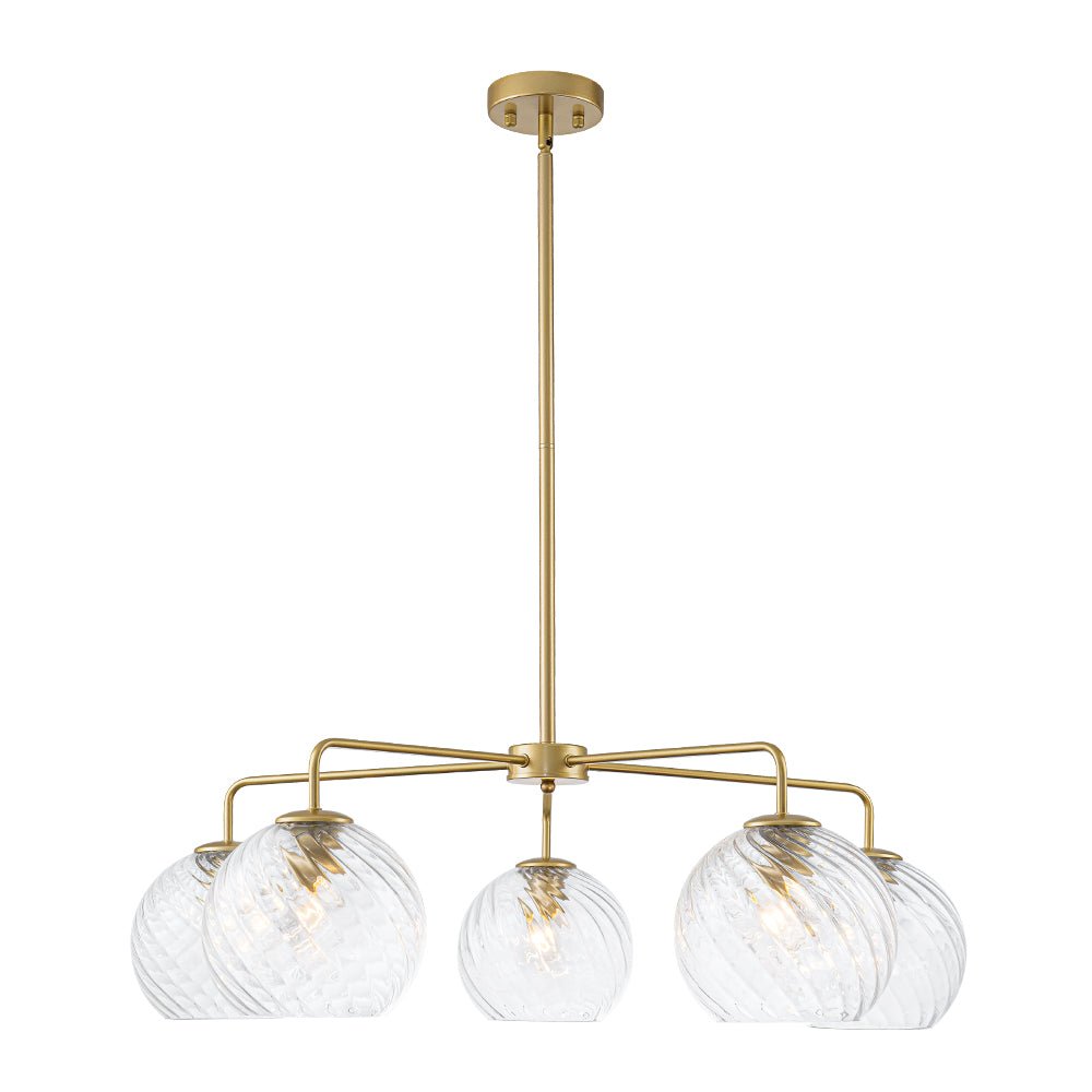 Five Lights • Bubble Style • Blue Ribbed Glass • Brass Finish • E26 Medium-Base Bulbs (Not Included) • Adjustable Pole • Hardwired • UL Listed/ETL