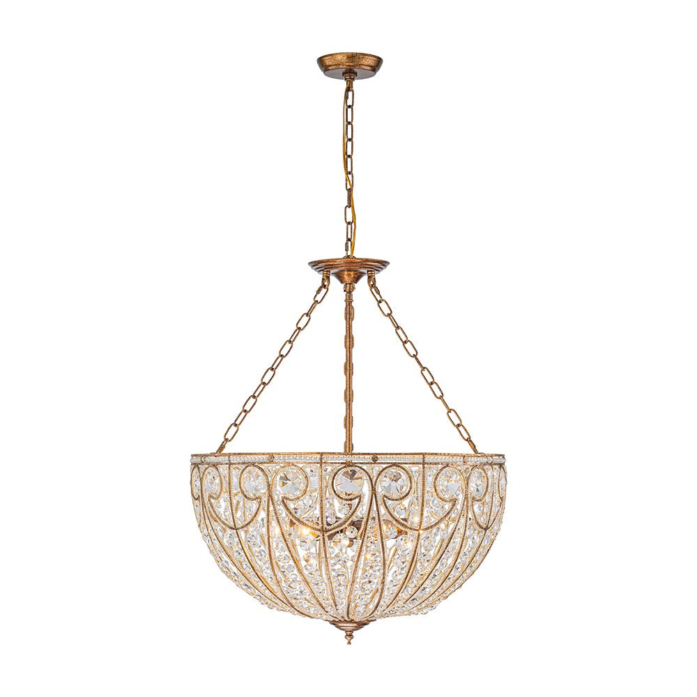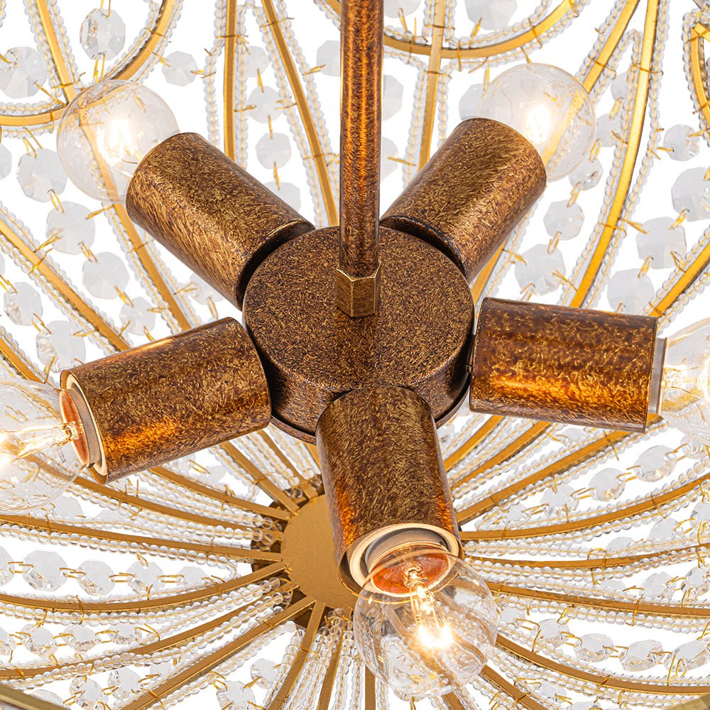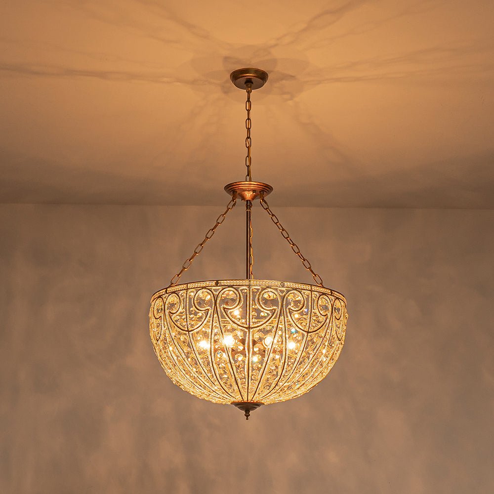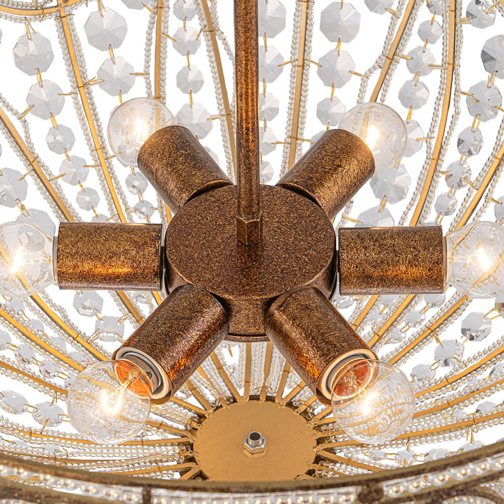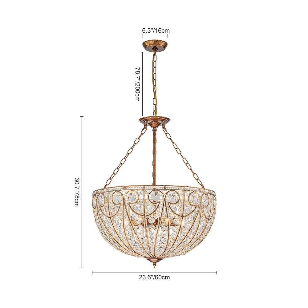 Five/Six Lights • Cutting Crystal Accents • Antique Gold Bronze Finish • Bowl Cage • Vintage Luxury Style • E12 Candelabra Bulbs (Not Included) • Hardwired • UL Listed/ETL