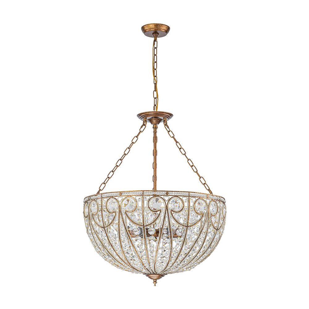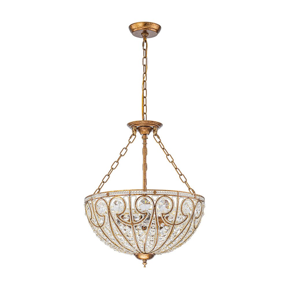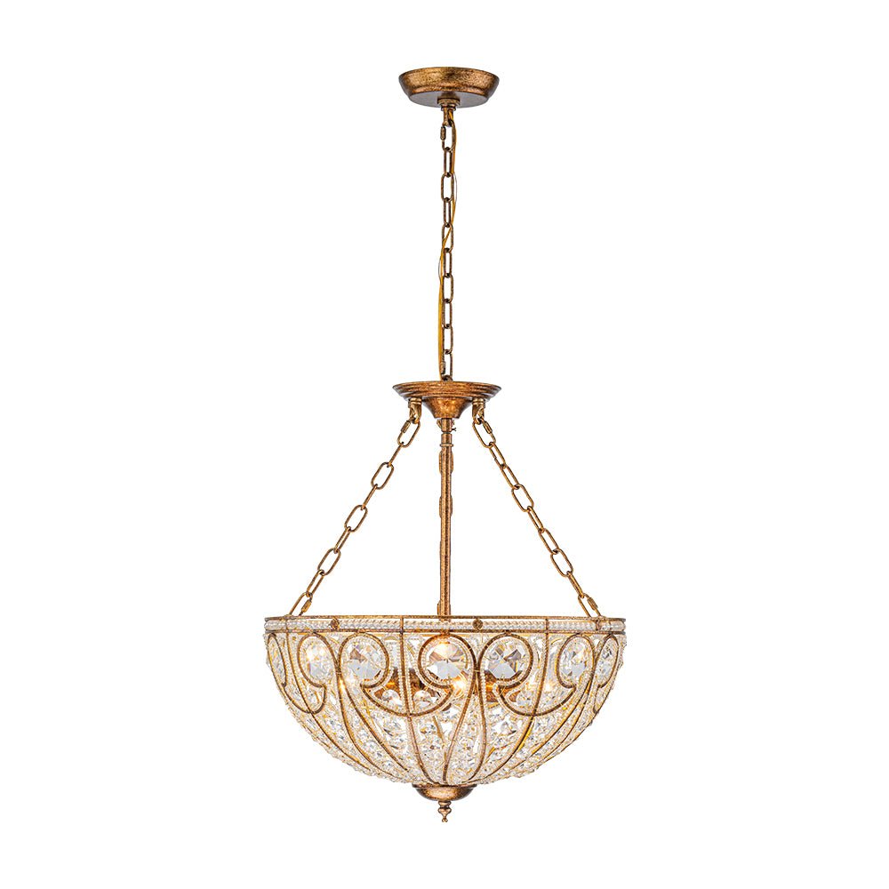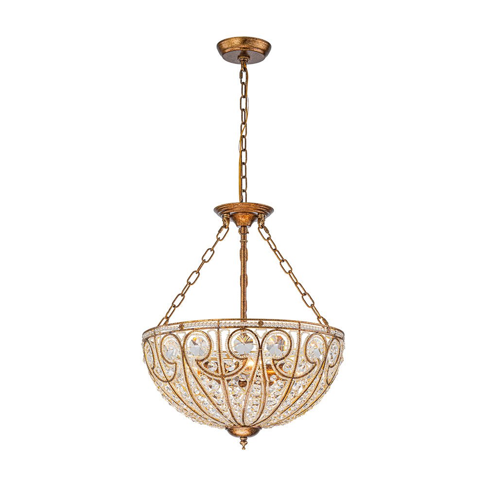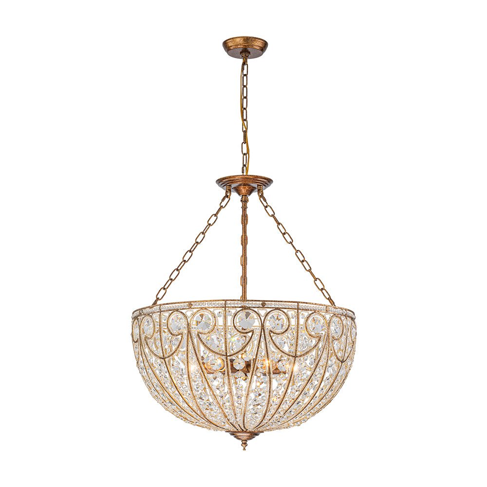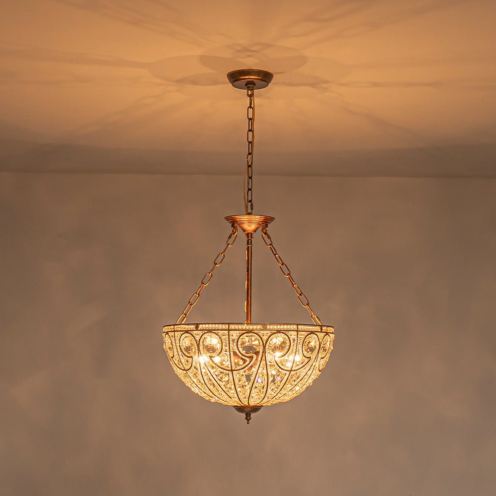 Five/Six Lights • Cutting Crystal Accents • Antique Gold Bronze Finish • Bowl Cage • Vintage Luxury Style • E12 Candelabra Bulbs (Not Included) • Hardwired • UL Listed/ETL