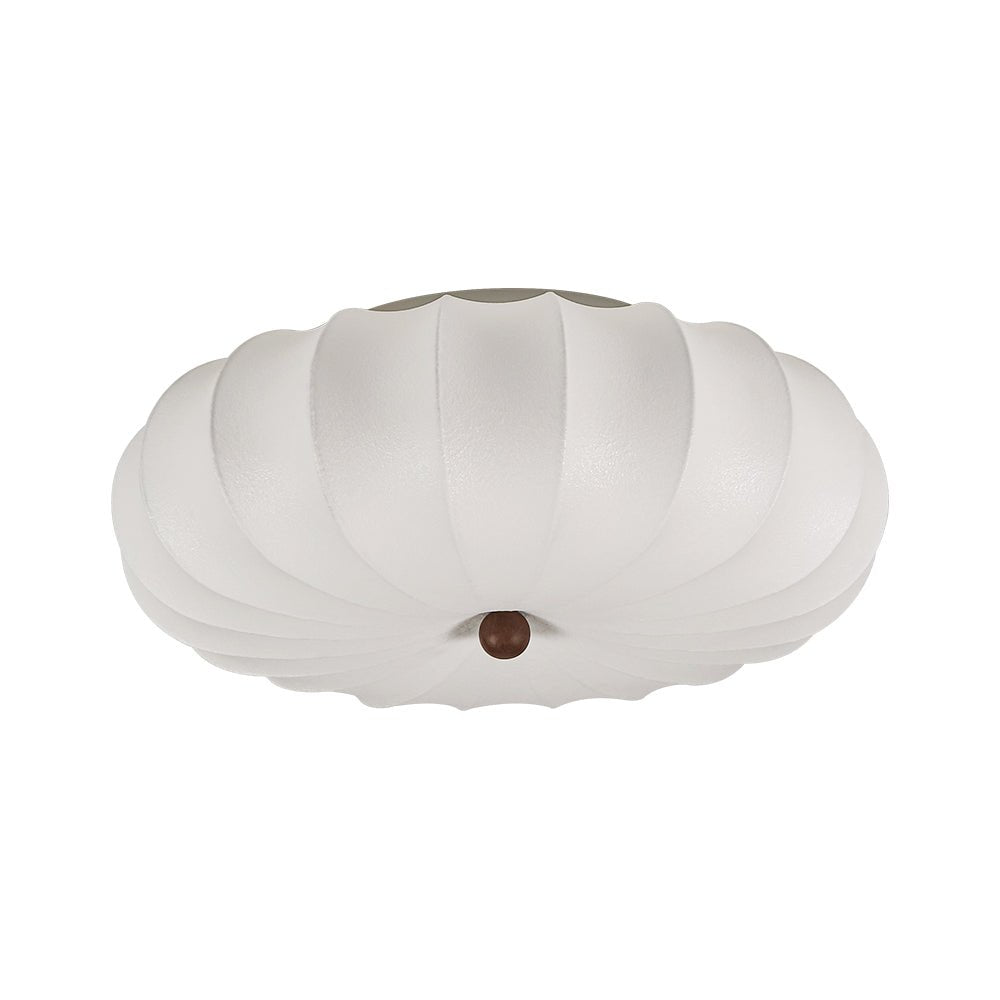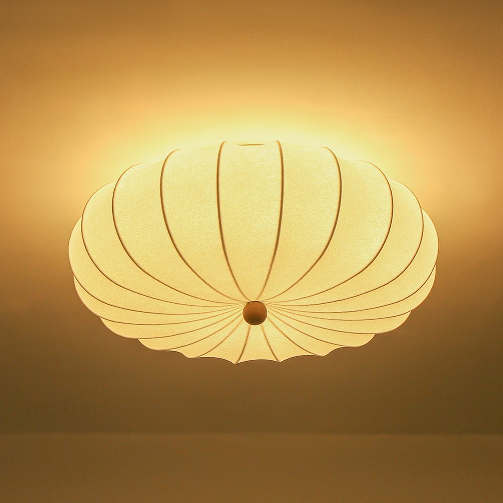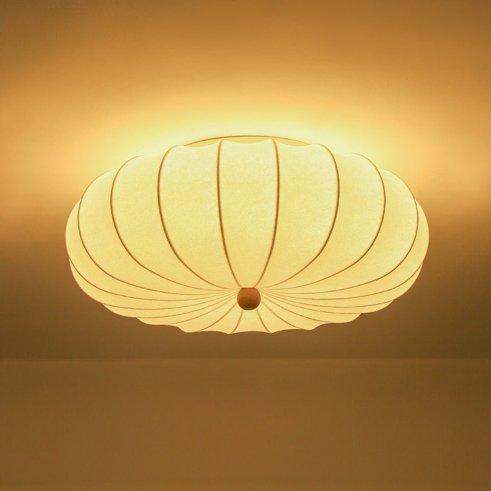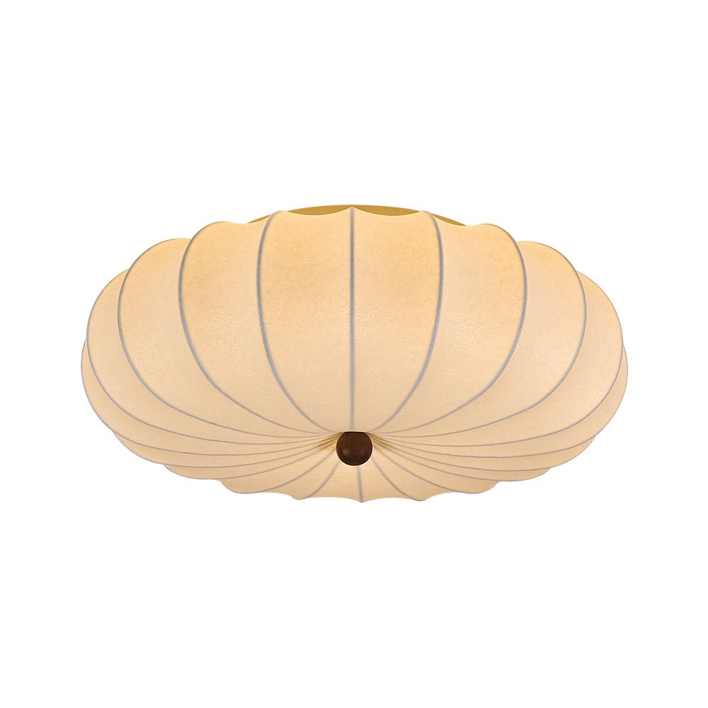 Skillfully blending Bohemian charm and soft traditional elegance, this round cage flush mount ceiling light add understated statement to any space. Inspired by traditional Oriental lanterns, its geometric metal frame is accented with graceful scalloped detailing that creates a refined and harmony silhouette. Wrapped in delicate white silk, the shade highlights artisanal craftsmanship and organic beauty, while a dark wood grain ball finial adds a subtle touch of vintage, rustic character. When illuminated, the silk-wrapped cage gently diffuses the light, casting a warm, ambient glow that creates a calm and cozy atmosphere. Perfect for entryways, dining rooms, bedrooms, foyers, or living rooms, this scalloped silk cage ceiling light brings serene sophistication and effortlessly complements both traditional and contemporary interiors.