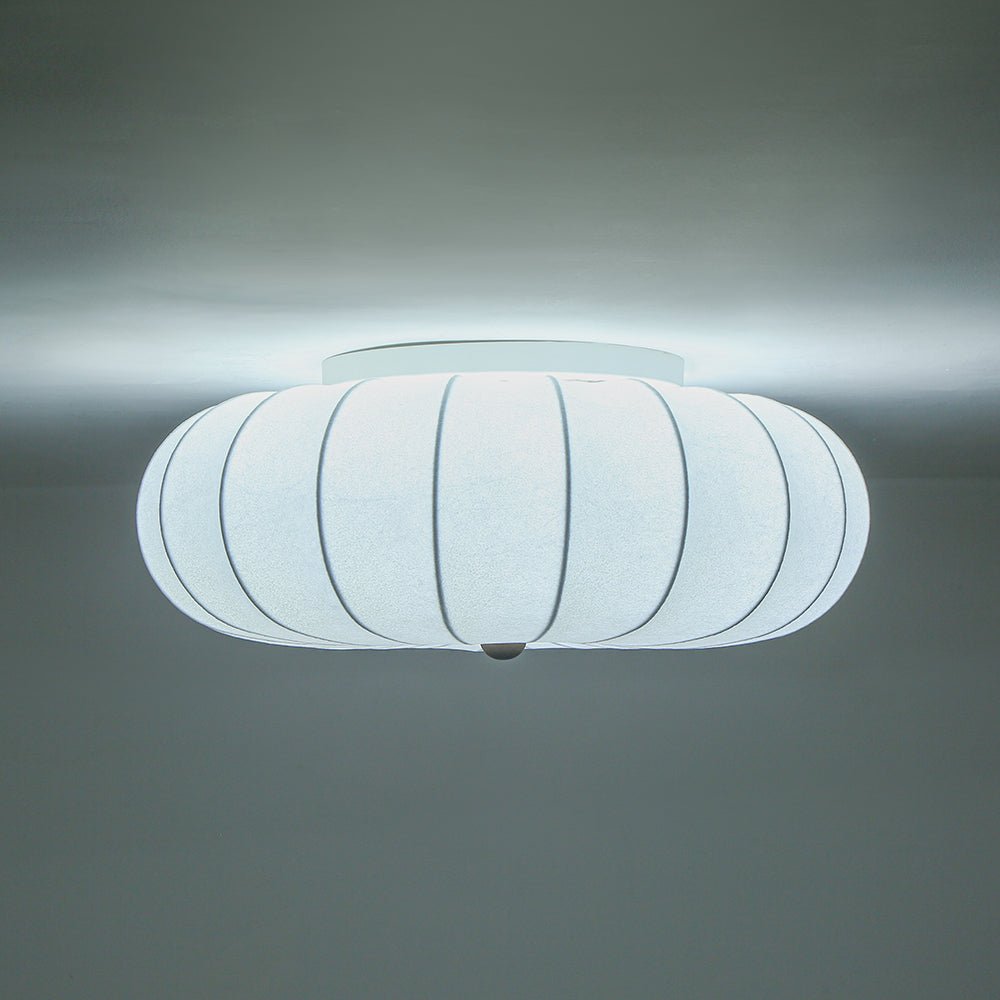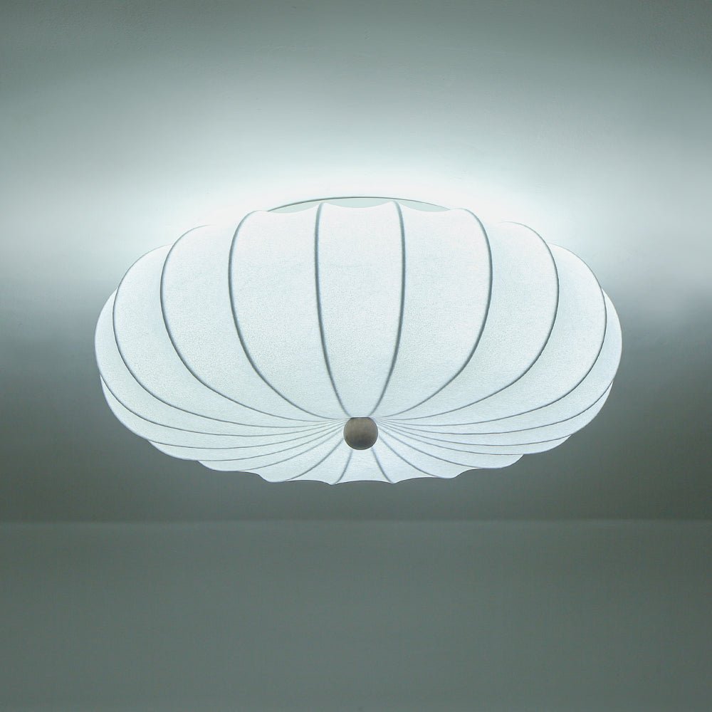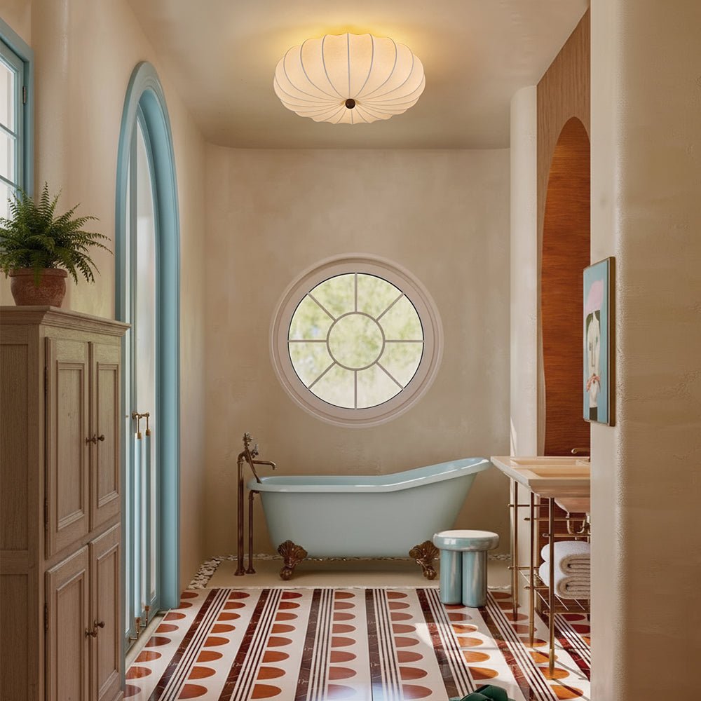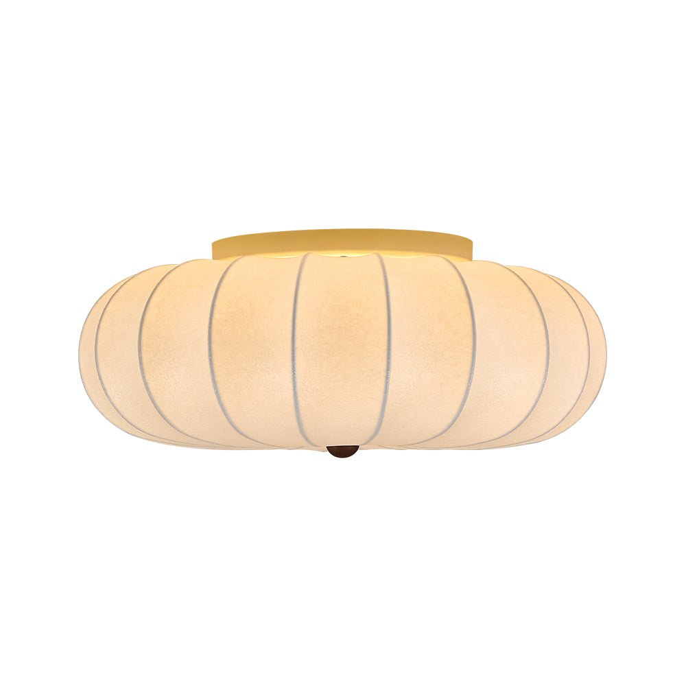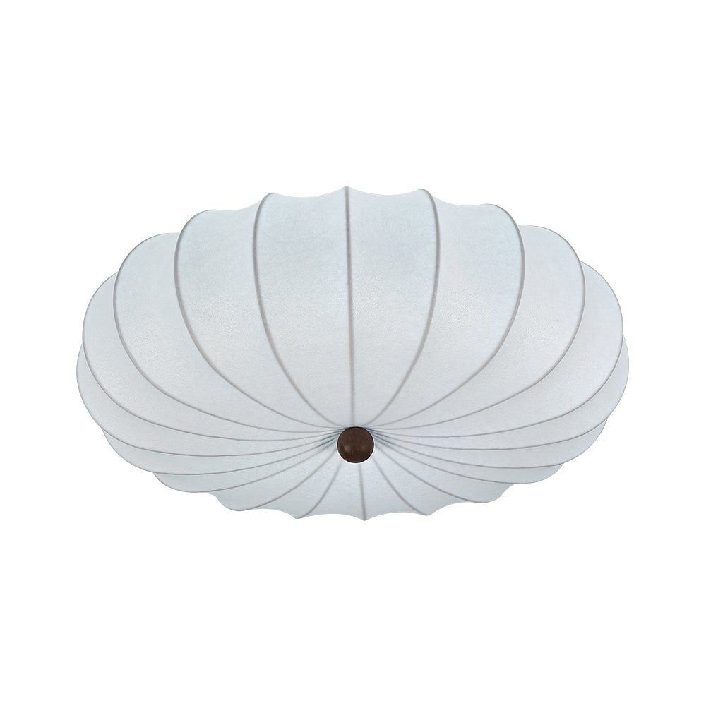 Skillfully blending Bohemian charm and soft traditional elegance, this round cage flush mount ceiling light add understated statement to any space. Inspired by traditional Oriental lanterns, its geometric metal frame is accented with graceful scalloped detailing that creates a refined and harmony silhouette. Wrapped in delicate white silk, the shade highlights artisanal craftsmanship and organic beauty, while a dark wood grain ball finial adds a subtle touch of vintage, rustic character. When illuminated, the silk-wrapped cage gently diffuses the light, casting a warm, ambient glow that creates a calm and cozy atmosphere. Perfect for entryways, dining rooms, bedrooms, foyers, or living rooms, this scalloped silk cage ceiling light brings serene sophistication and effortlessly complements both traditional and contemporary interiors.