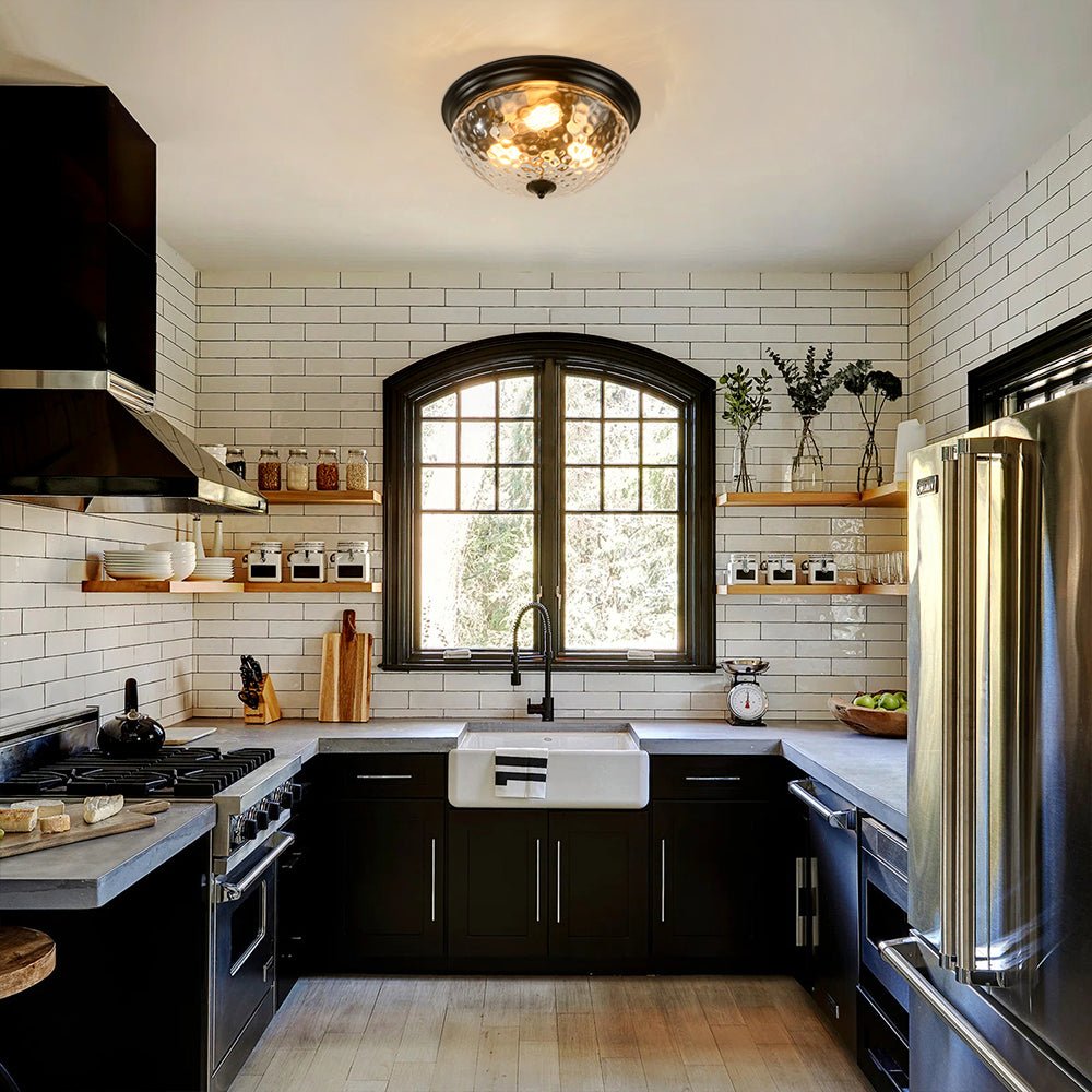 Striking yet understated, our textured glass flush mount light is the ideal low-key enhancement for your space. This round ceiling light features an uneven hammered glass shade reminiscent of an antique sugar pot lid, creating a captivating water ripple effect. Illuminated by three E26-base medium bulbs (not included), this round flush mount ceiling light casts a warm and inviting glow, making it perfect for entryways, dining rooms, kitchens, corridors, bedrooms, bathrooms, or foyers.