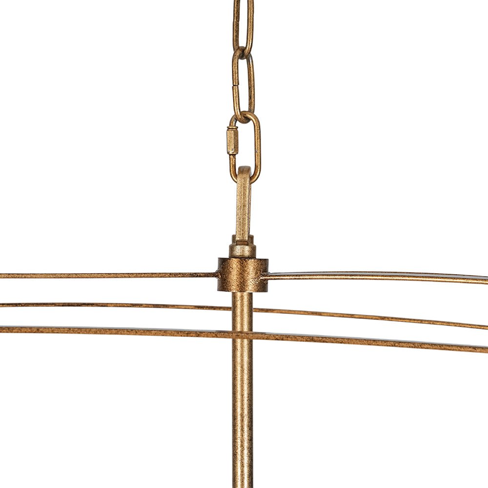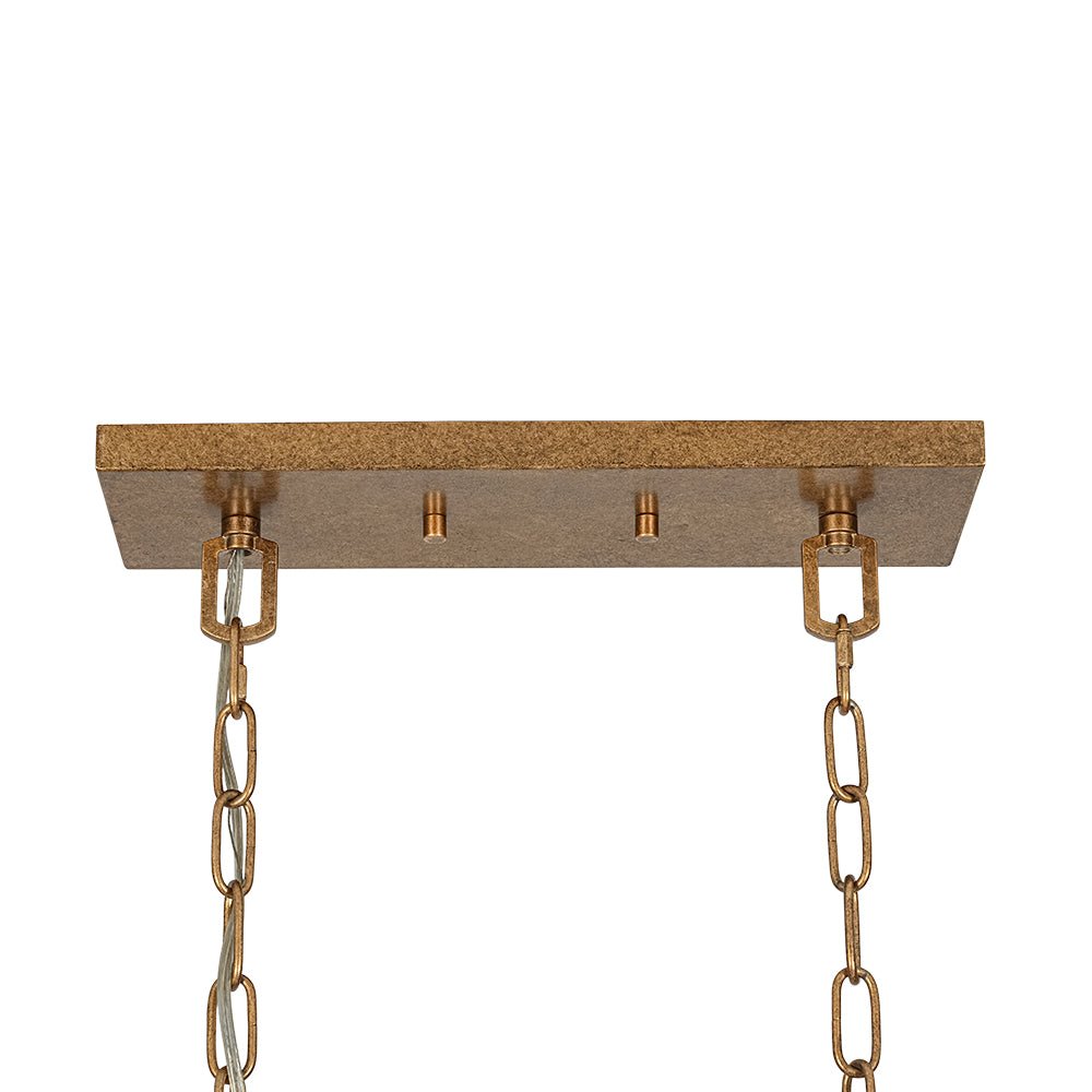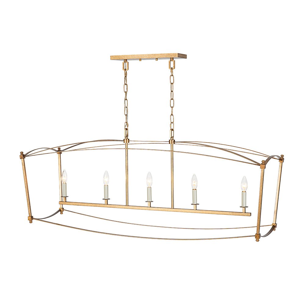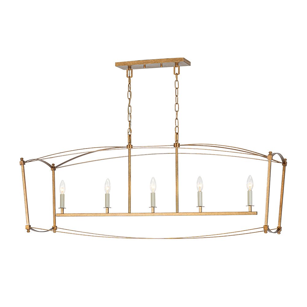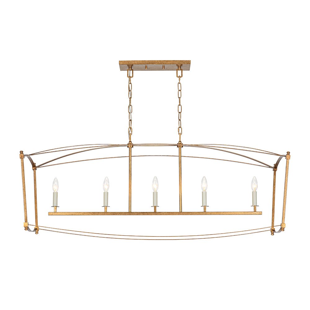 This 5-light vintage square cage kitchen island pendant offers generous ambient illumination within a clean, box-inspired silhouette that balances both function and beauty. Crafted from durable metal, the wide rectangular lantern frame features slender lines and softly arched details, evoking classic French country elegance with a light, airy presence. Five candle-style ivory sockets accommodate E12 candelabra bulbs (not included), enhancing the romantic cage design with timeless charm. Finished in distressed gold, this candle style lantern chandelier brings shabby chic warmth and gently aged character to your space. Ideal for kitchen islands, dining areas, breakfast nooks, entryways, or open-concept living spaces, this linear rectangle cage island chandelier creates an inviting focal point with refined rustic appeal.