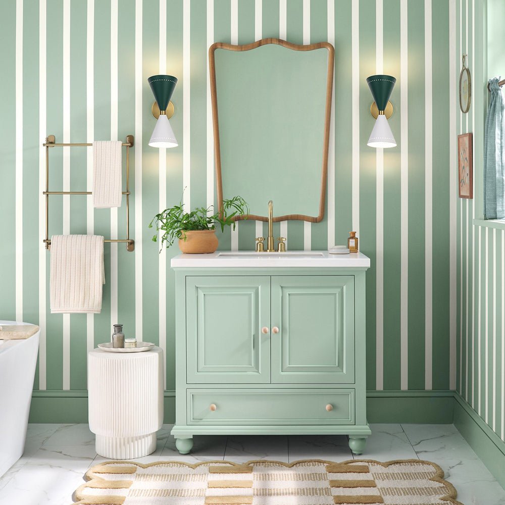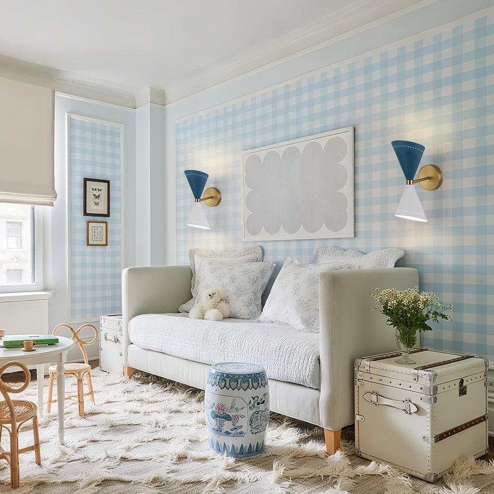 Inspired by the timeless hourglass silhouette, this modern 2-light wall sconce features dual metal cone shades with clean, sculptural lines and color-block design. Brushed brass accents lend a touch of mid-century warmth, while two carefully curated color pairings let you express either bold personality or soft serenity.