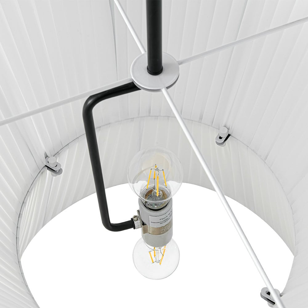 Boho 2-Tier White Fabric Tapered Drum Pendant Light