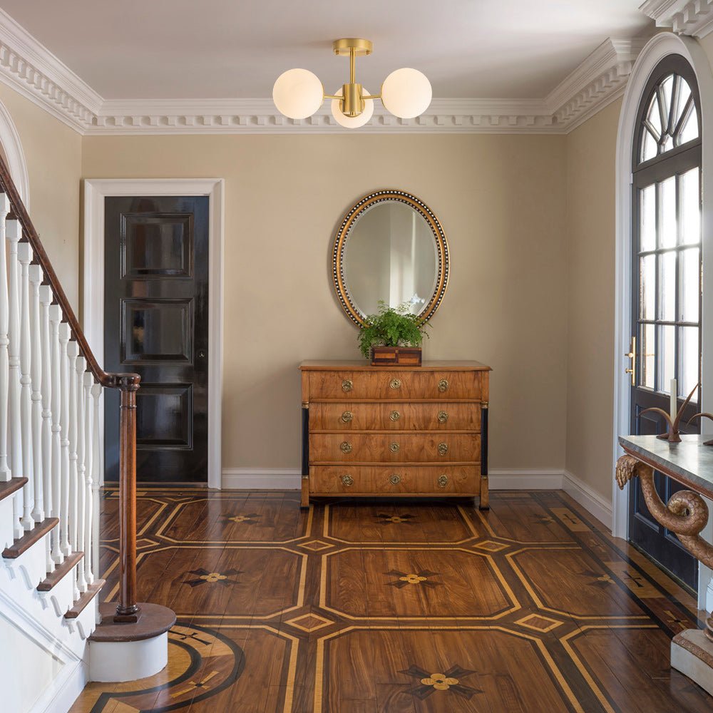 Brass 3-Light Opal Glass Globe Semi Flush Mount