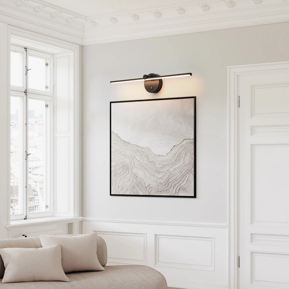 Designed with a clean, minimalist style, this modern wall sconce features a slender linear strip outfitted with 3000K LED, providing focused downward illumination. It’s perfect for use above a sink, bathroom vanity, or mirror, and can also highlight artwork as a picture light. Equipped with a 350-degree rotating adapter, the LED strip offers flexible lighting angles. With a compatible dimmer switch (not included), you can adjust the brightness, making this vanity wall light a versatile fixture. Whether in a residential setting or a business office, this contemporary dimmable LED wall lamp will complement any space.