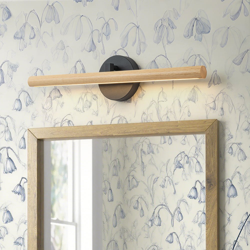Perfect blend of rustic warmth and modern minimalism, this LED linear wall sconce features a slender pine wood body supported by a round matte black backplate, delivering a clean, understated aesthetic with natural texture. Outfitted with a built-in 3000K warm white LED strip, this adjustable vanity light offers focused downward illumination—ideal for grooming tasks or accent lighting. The 305-degree rotatable adapter allows for flexible installation and light direction. Compatible with standard 110V dimmer switches (not included), you can easily adjust brightness to suit your mood or needs. Perfectly suited for installation above a sink, bathroom vanity, or mirror, this dimmable LED linear wall lamp can also be used as a picture light to highlight artwork. Its versatile design makes it ideal for both residential and commercial spaces.