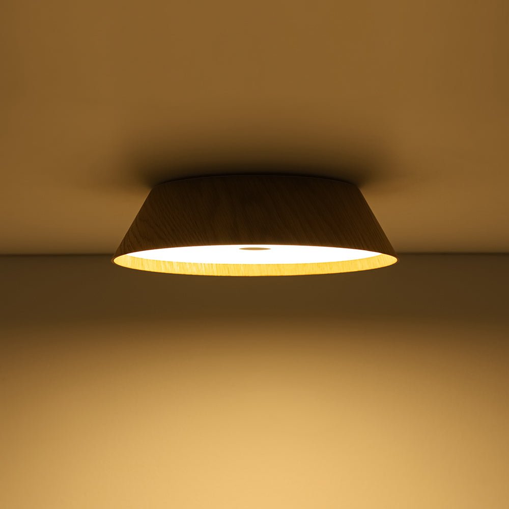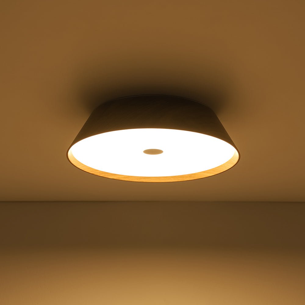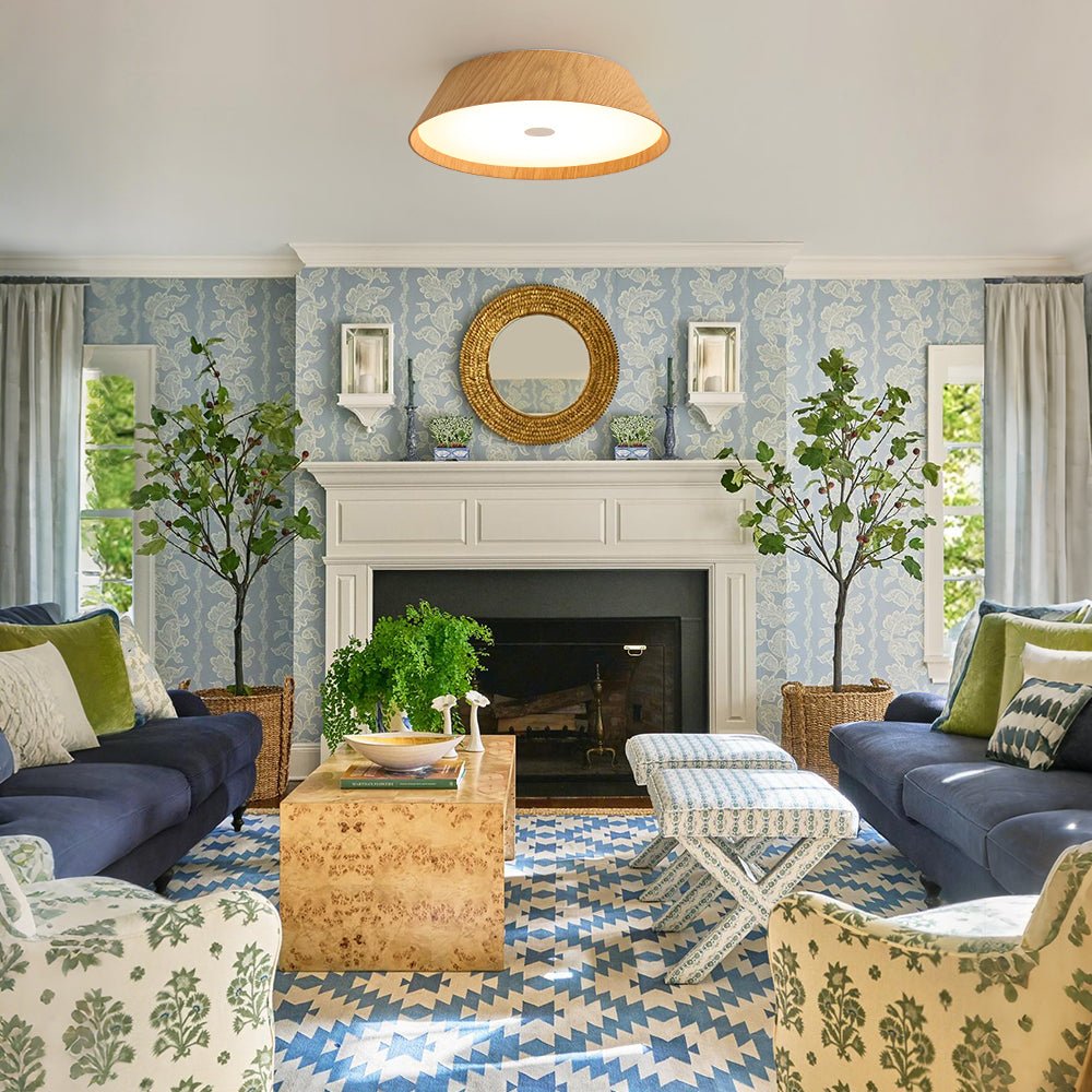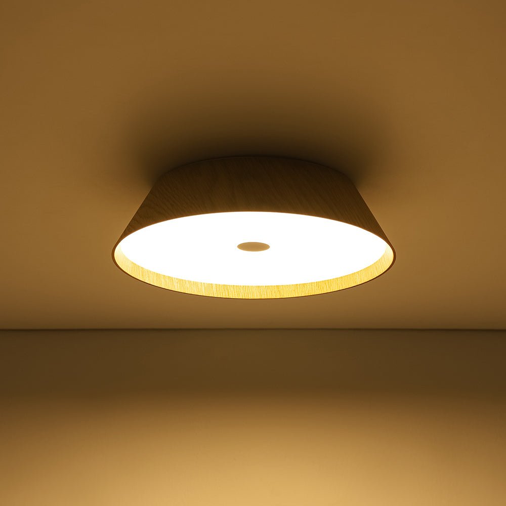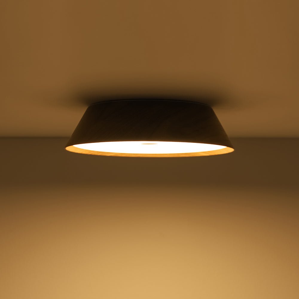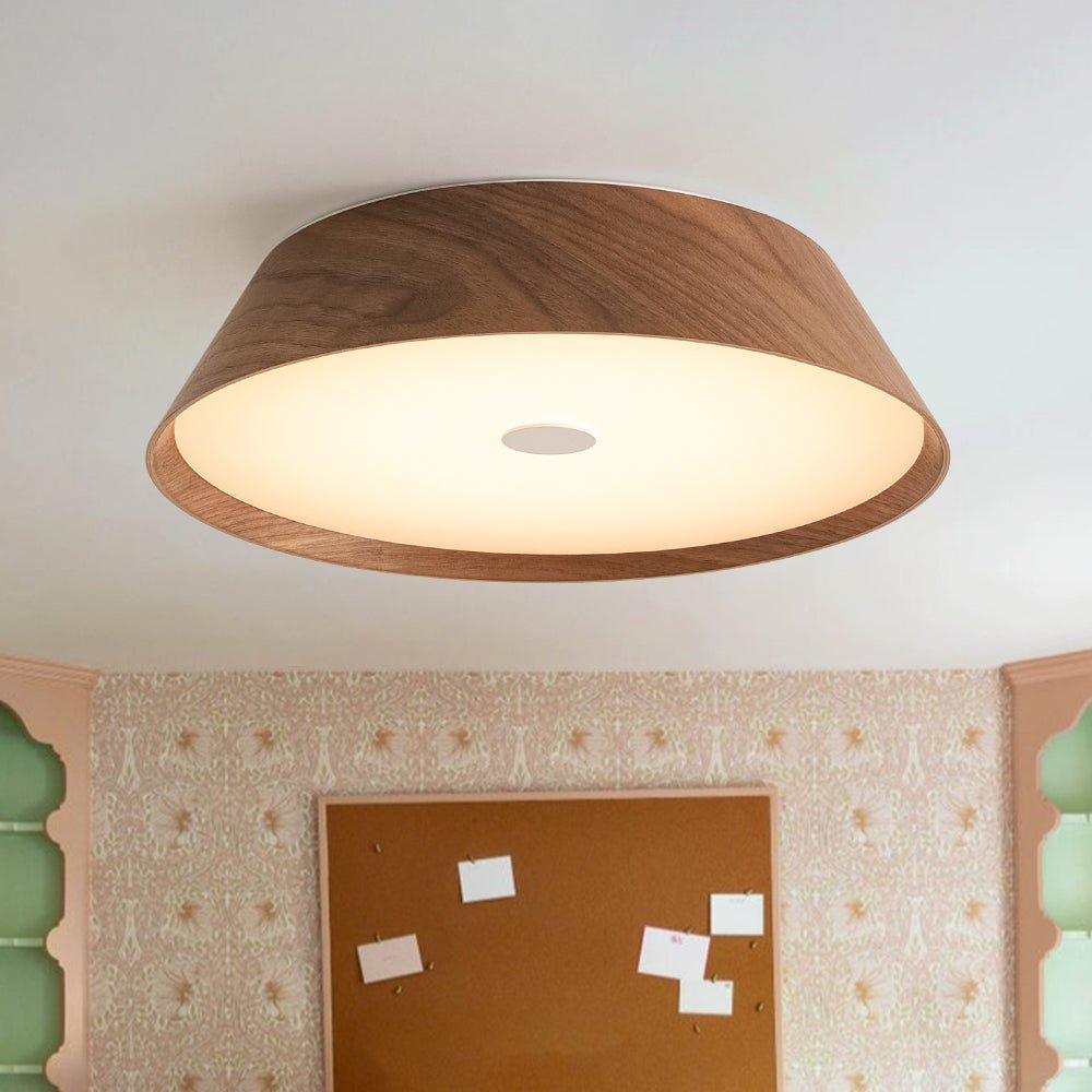 Enhanced with natural wood veneer, this ceiling light comes in two organic-style finishes: a rich dark walnut that adds dramatic depth to vintage or farmhouse-inspired interiors, and a light oak grain that brings an airy, refreshing touch to Scandinavian, bohemian, or wabi sabi-inspired spaces.