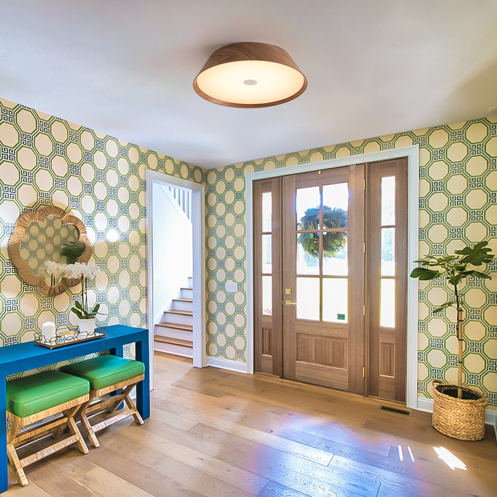 Bring both style and function to your home with this round LED flush mount ceiling light, where rustic elegance blends seamlessly with modern Nordic simplicity. Its sleek, low-profile silhouette and shallow tapered wood-crafted shade create a refined look that suits a variety of spaces.