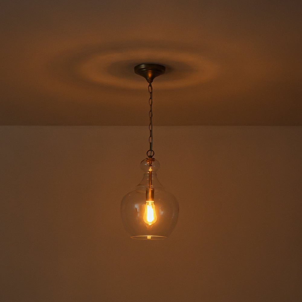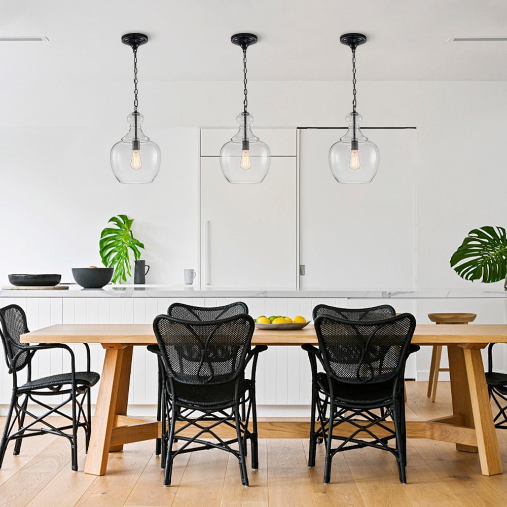 Exuding a charming blend of transitional farmhouse style and subtle French elegance, this single glass hanging light complements a variety of interiors. It can be used alone or in multiples to enhance a kitchen island or dining room. This kitchen pendant features a bell-shaped clear glass shade with sleek, graceful curves, accented by a brushed brass or matte black finish. Dimmable for customizable ambiance and adjustable in hanging height, this 1-light clear glass bell pendant is a versatile light fixture to improve your lifestyle.