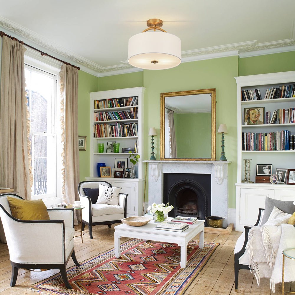 - Contemporary Linen Semi Flush Mount Light