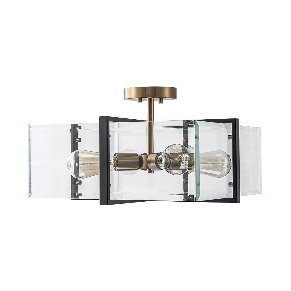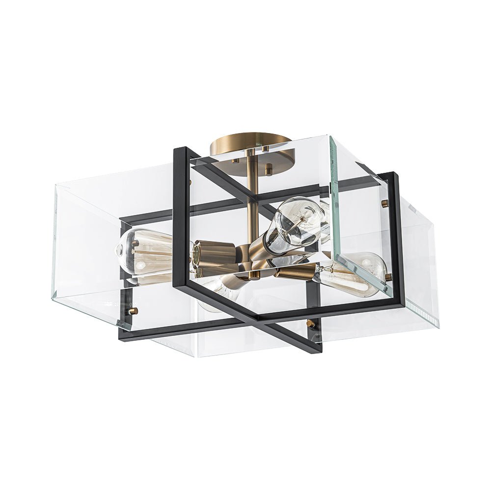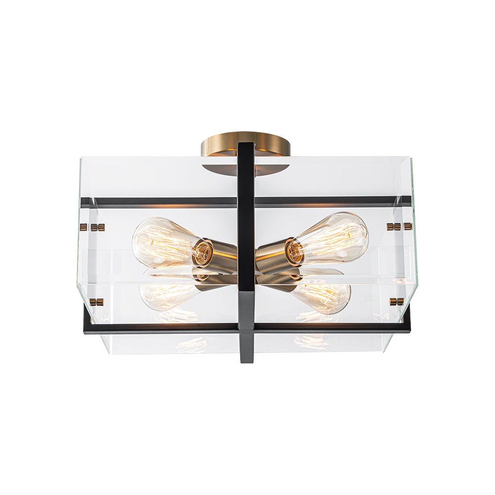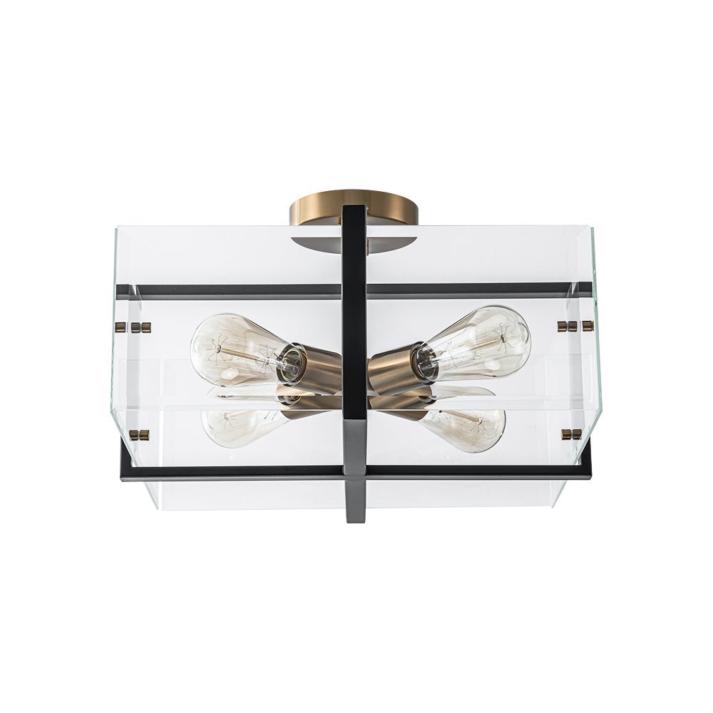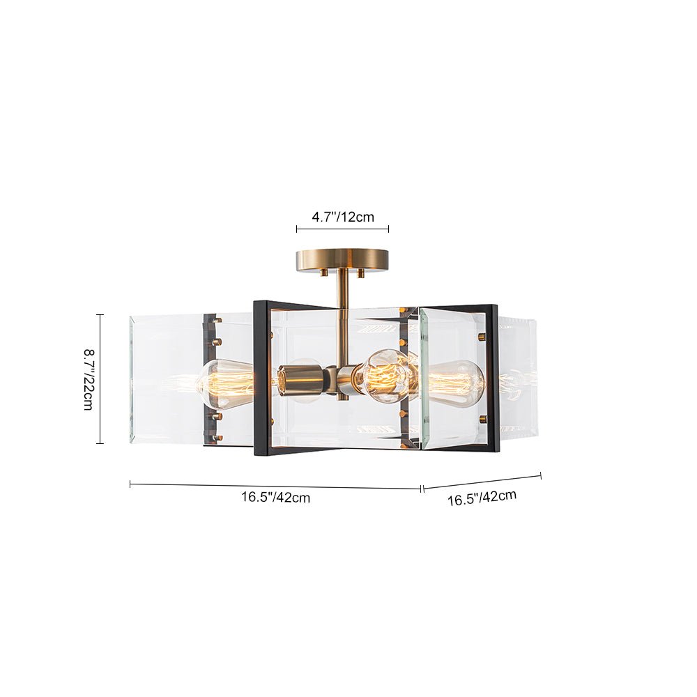 Introducing our 4-light glass semi-flush mount ceiling lightāwhere contemporary simplicity meets farmhouse sophistication. Two matte black rectangular frames form an intersecting design, adorning with four matching clear glass panels that create a minimalist yet edgy square cage. The open design and transparent glass allow four E26 medium-base bulbs (not included) to cast a bright, unobstructed glow, illuminating your space with elegance. Aged brass sockets and base add a pop of color and refinement, enhancing the light's overall appeal. Perfect for elevating any roomāwhether itās a kitchen island, entryway, hallway, dining room, bedroom, bathroom, foyer, office, or living areaāthis 4-light square cage ceiling light combines both style and practicality.