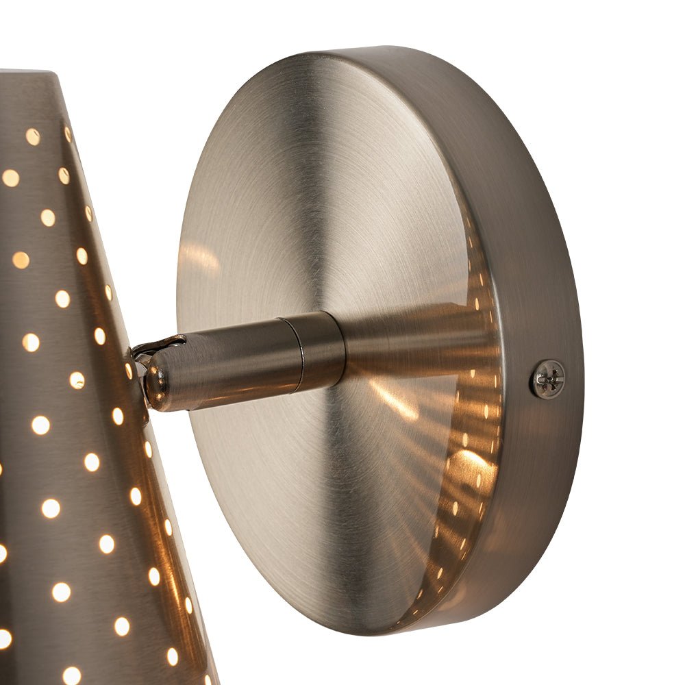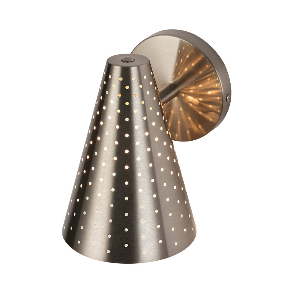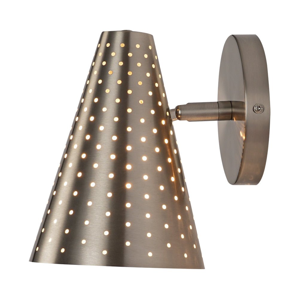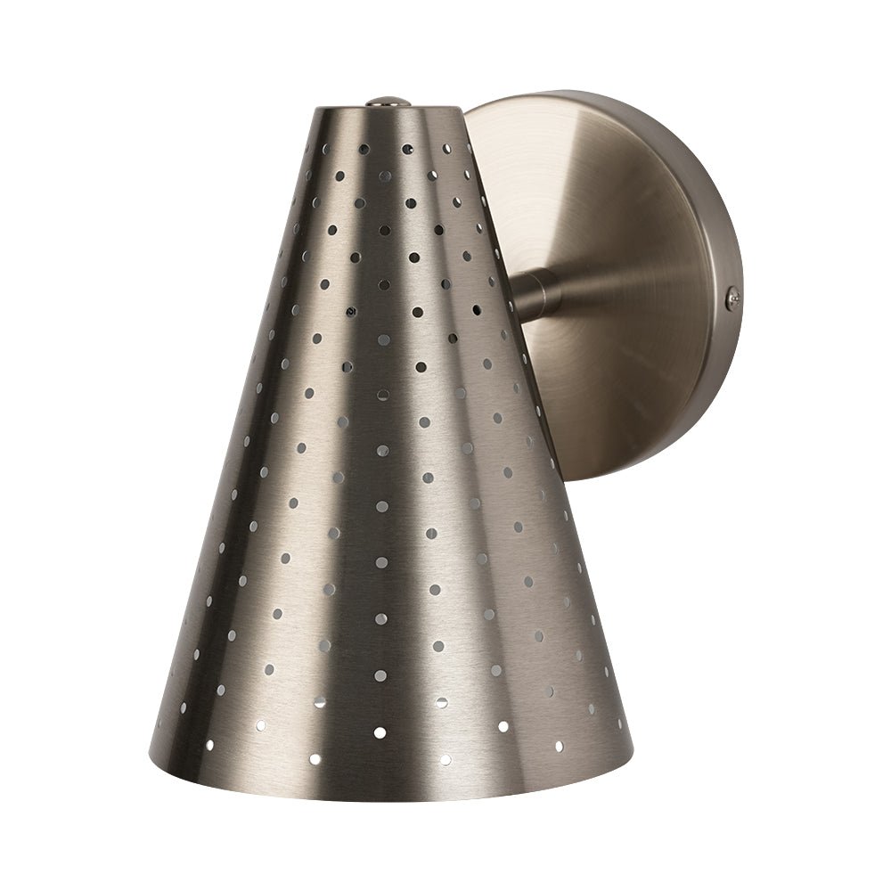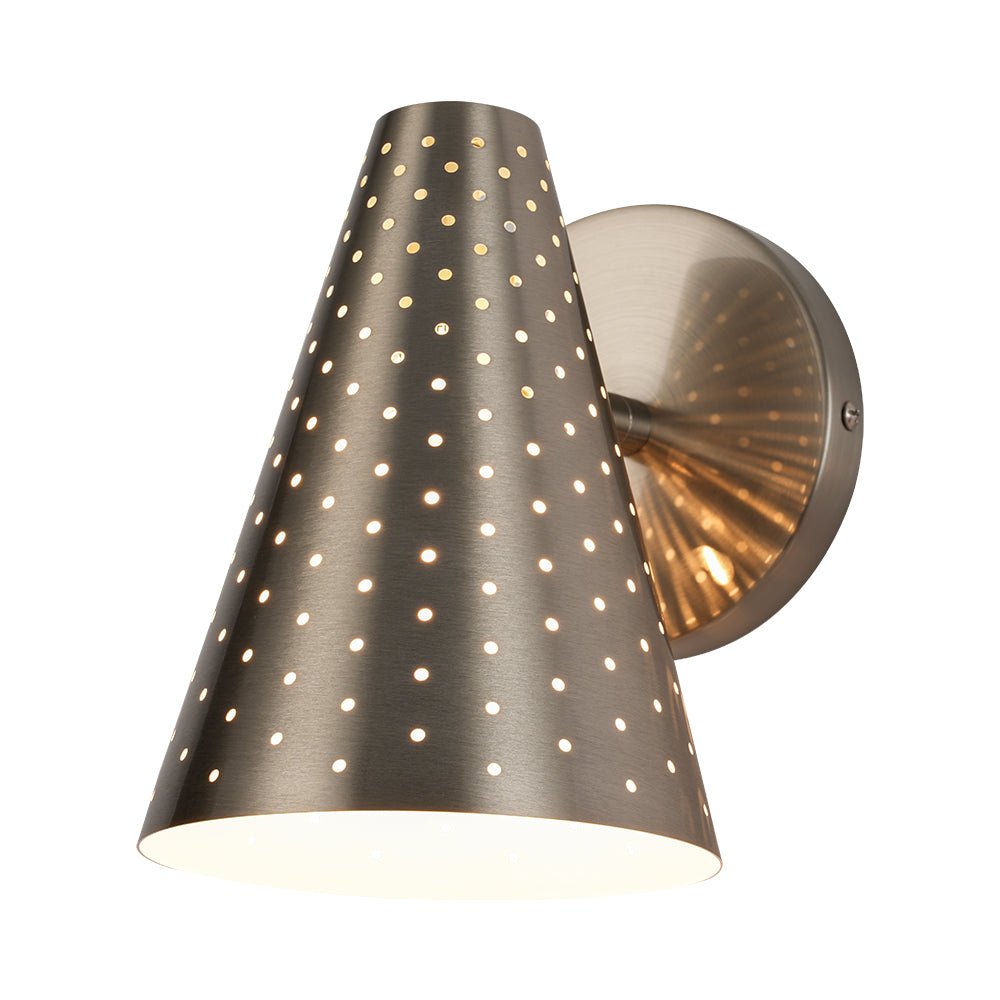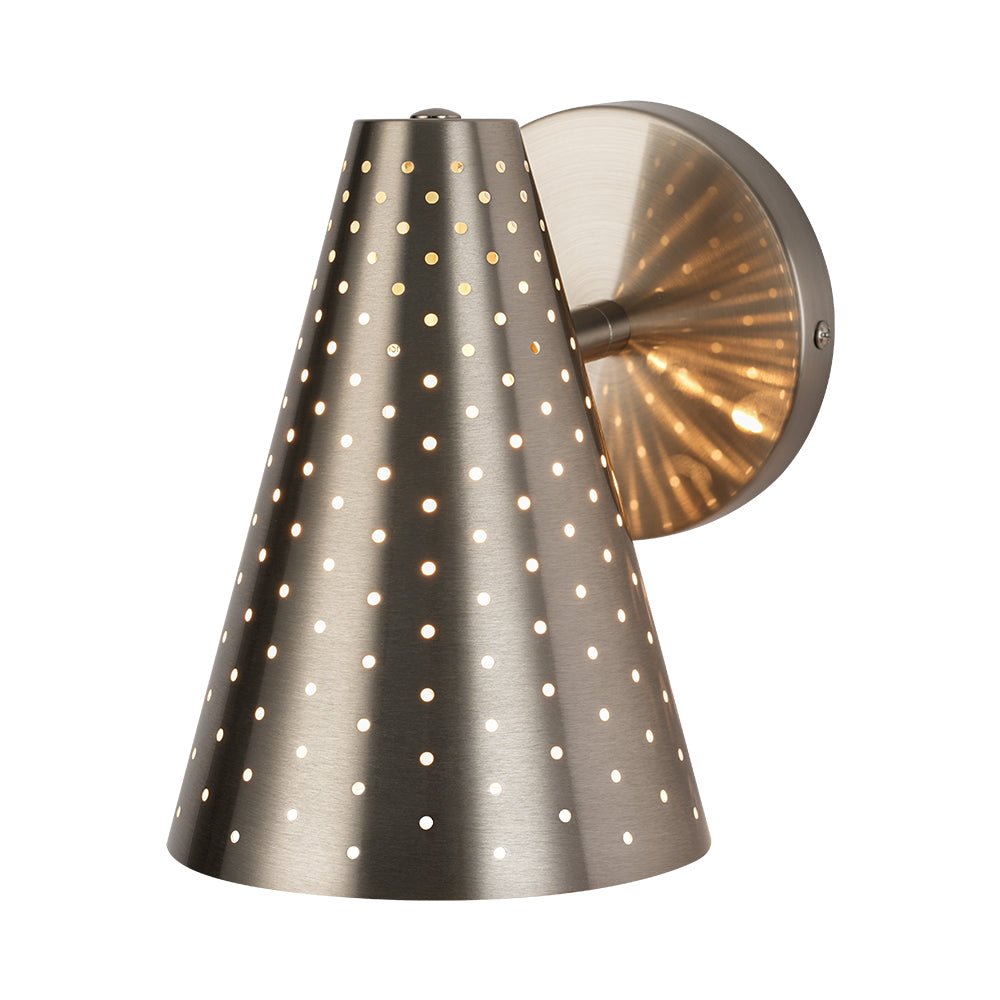 Add a modern touch and ambient glow to your space with this cone-shaped wall sconce. Featuring a clean, tapered silhouette, this 1-light wall lamp brings contemporary charm with a subtle retro twist. Its sleek metal shade is meticulously perforated with pinhole detailing that creates a mesmerizing starburst lighting effect on the wall when illuminated.