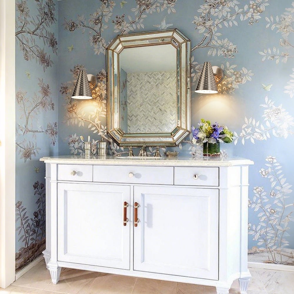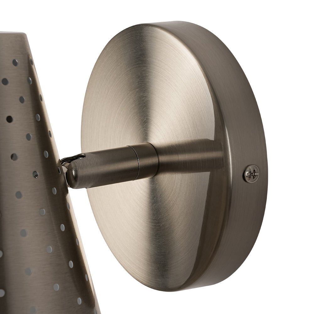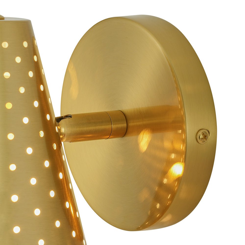 Crafted in a brushed brass or nickel finish, this metal cone wall light not only delivers warmth and texture but also serves as a decorative accent even when turned off. A 180° swivel adapter lets you easily direct the light upward or downward for flexible illumination. The perforated cone allows pinpoint light to scatter gently across the surrounding wall, while the open base casts focused downward illumination—ideal for mood lighting, reading, or highlighting artwork.