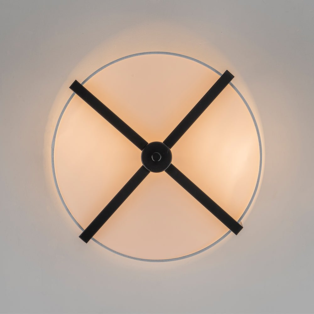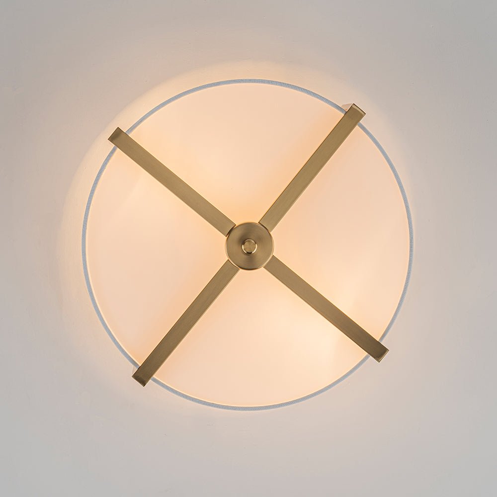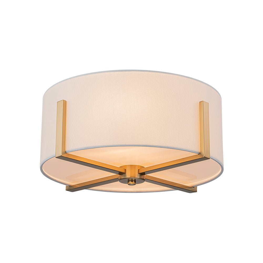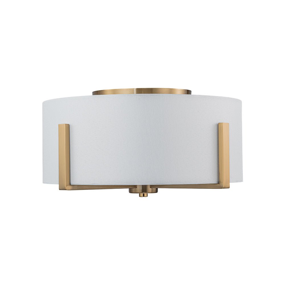 Two Lights ⢠Wide Drum Design ⢠White Fabric Shade ⢠Intersecting Frame ⢠Acrylic Diffuser ⢠Brushed Brass/Matte Black ⢠E26 Medium Bulbs (Not Included) ā¢Ā Hardwired ⢠UL Listed/ETL