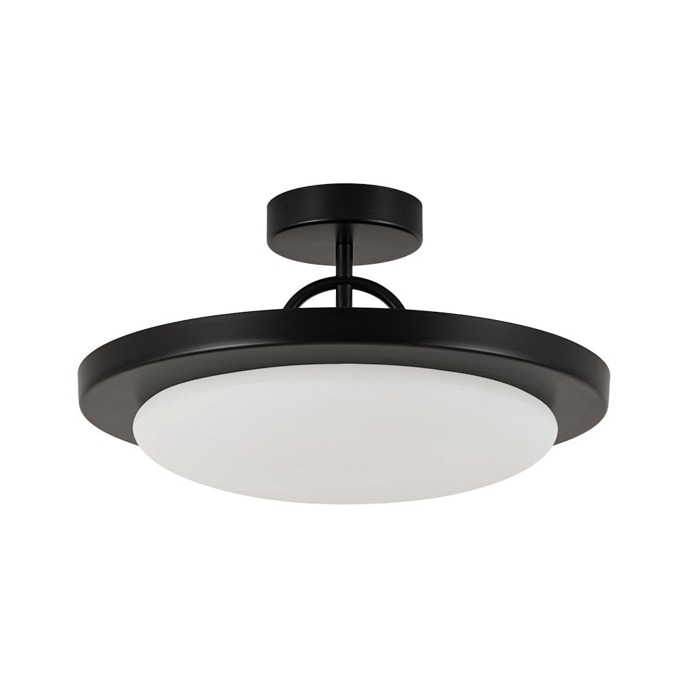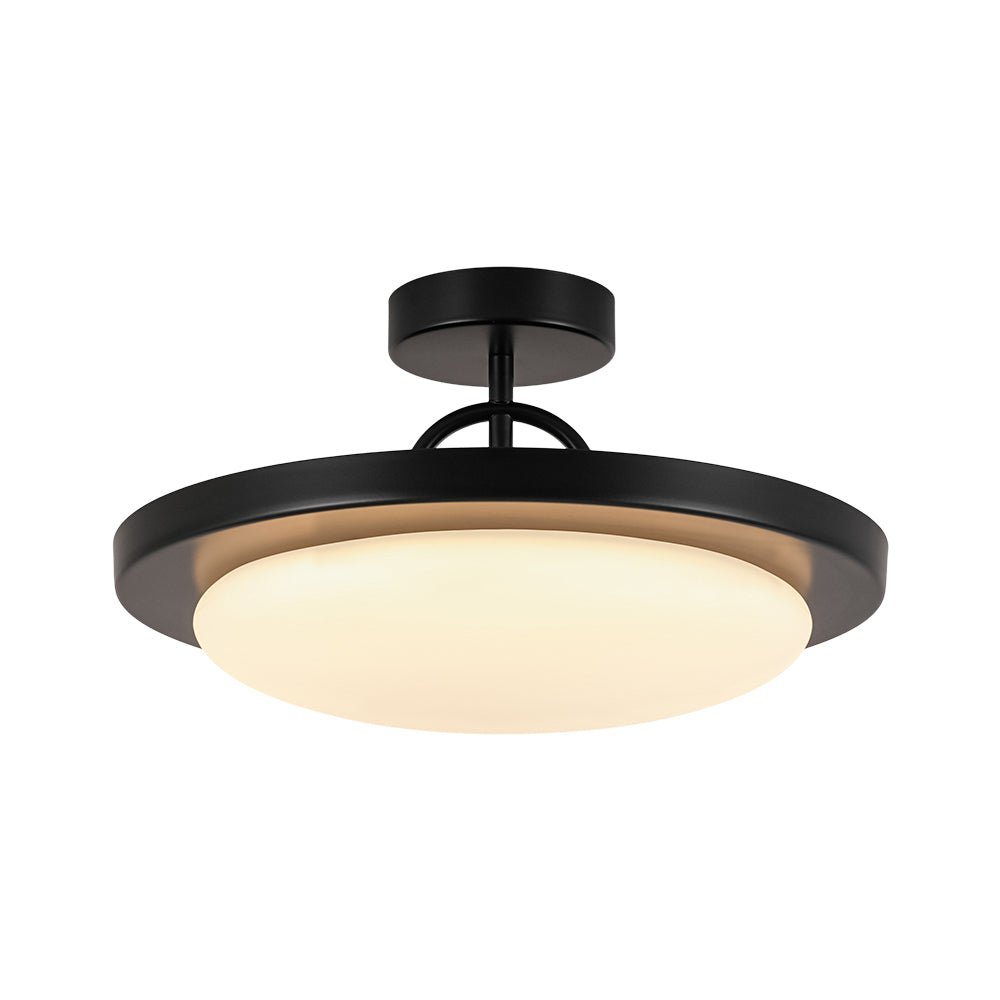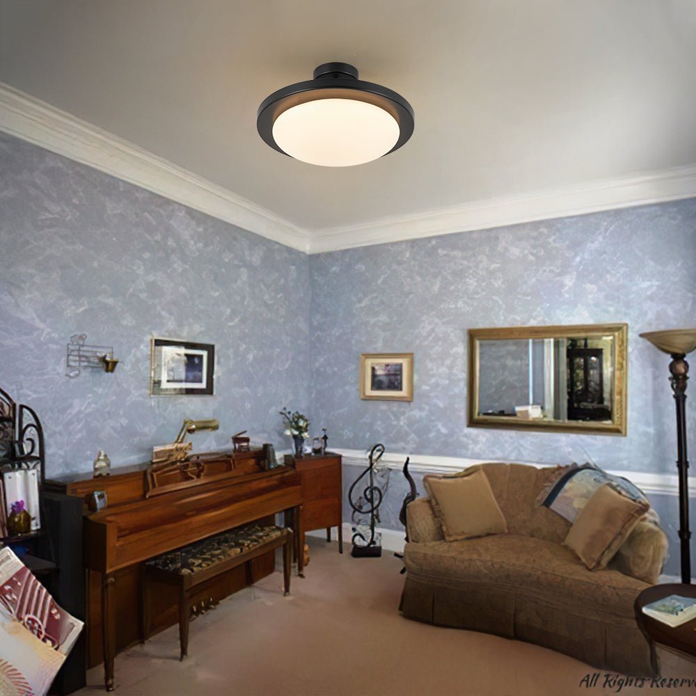 Featuring a matte black minimalism round silhouette, this LED semi-flush mount boast a Scandinavian elegance with subtle vintage charm. A milky white acrylic shade gently filters the light, casting a warm 3000K glow that feels calm, inviting, and never harsh. The integrated 17W LED delivers 1020 lumens with CRI 80 for efficient, even illumination and smooth triac dimming on 110V systems when paired with a compatible dimmer switch. Suitable to both modern and traditional interiors, this dimmable LED round ceiling light is ideal for bedrooms, dining areas, living rooms, nurseries, entryways, walk-in closets, and cozy hallways where warmth and quiet charm matter.