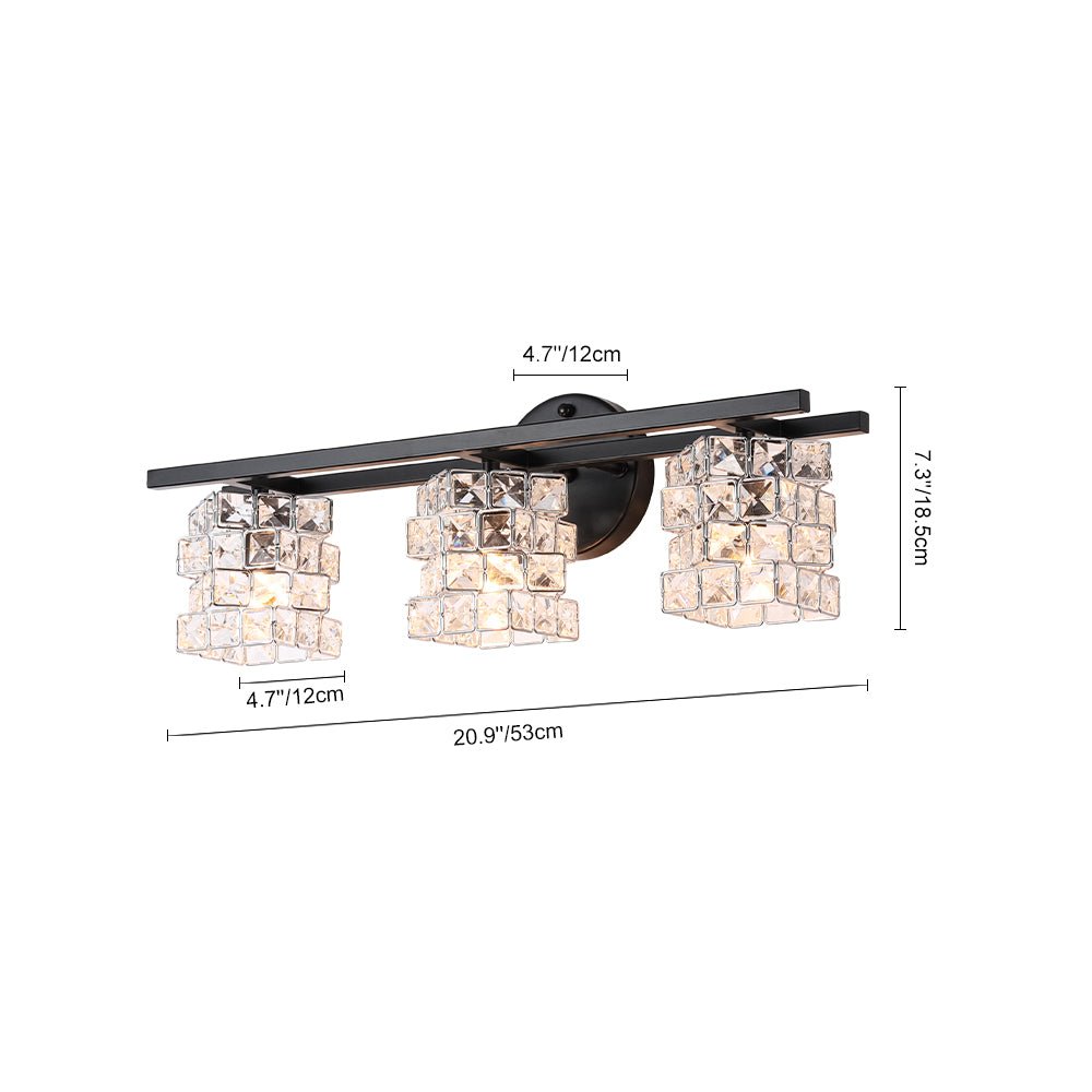 Bring modern artistry and radiant elegance to your space with this Rubik Cube-inspired vanity wall light. Each shade is designed in a striking four-tier lattice that can be rotated for a staggered, dimensional look, adding playful geometry and visual depth. The square frames are enriched with finely faceted crystal pieces that capture and refract light, transforming each beam into a dazzling sparkle.