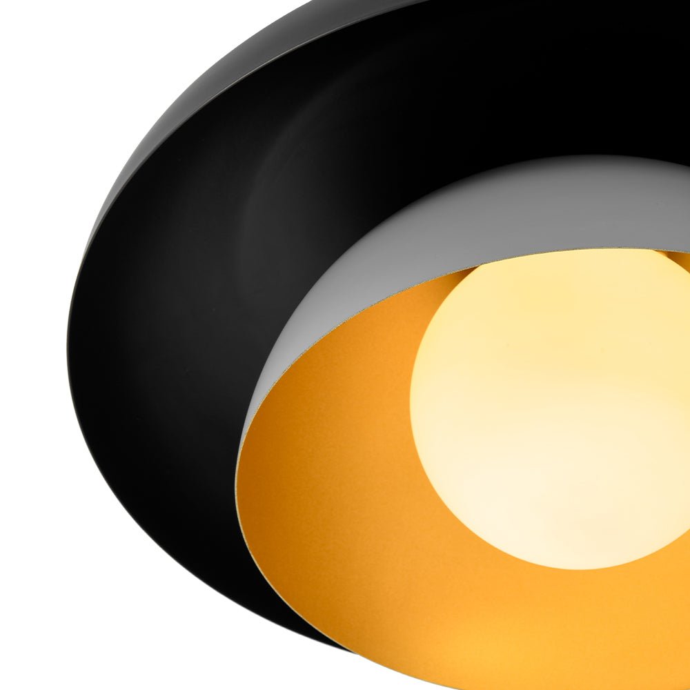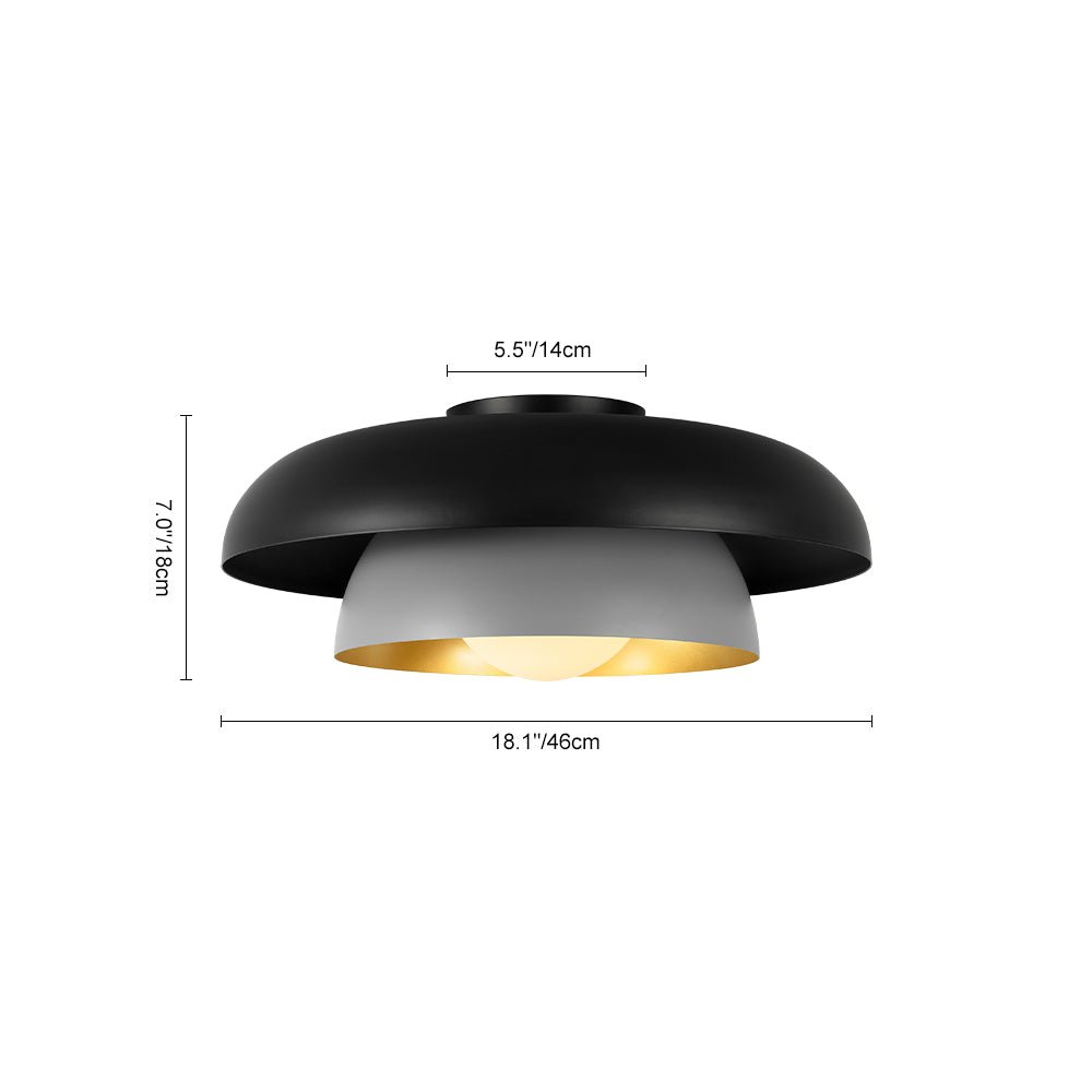 Add a touch of Nordic charm and minimalist elegance to your home with this 2-layer metal dome ceiling light. Featuring a shallow matte black dome layered over a smaller gray dome, the geometric silhouette brings visual depth and a clean, modern look.Ā Beneath the layered design, a frosted white glass globe softly diffuses light from a standard E26 bulb (not included), casting a warm and cozy glow. The muted color palette and sleek form make this round ceiling light a perfect fit for contemporary, Scandinavian, or modern interiors. Ideal for bedrooms, hallways, kitchens, entryways, or living rooms, this metal dome semi flush mount light offers both functional illumination and stylish appeal in any low-ceiling space.