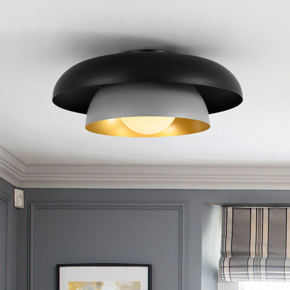 Scandinavian 2-Layer Metal Dome Semi Flush Mount Light