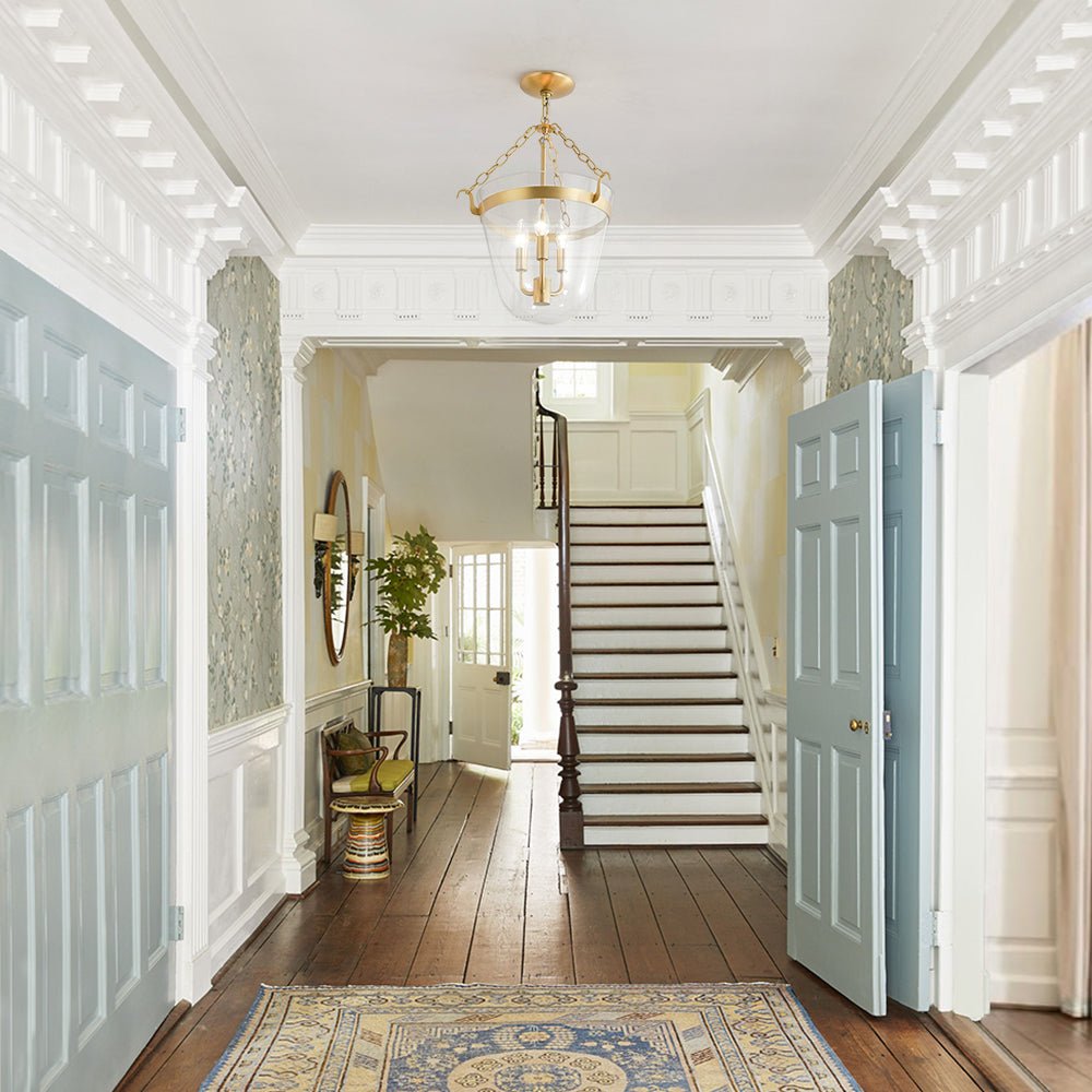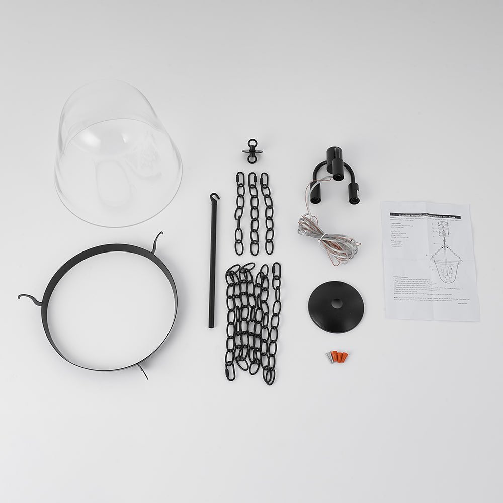 Effortlessly merging French manor elegance with mid-century modern flair, this 3-light lantern fixture offers both functionality and decorative appeal. Inspired by classic bell designs, this lantern ceiling light features a sleek clear glass jar cage suspended by three side chains, striking a perfect balance between classic charm and contemporary style. Inside, a 3-light candle-style holder accommodates E12 candelabra bulbs (not included), casting bright task lighting with a touch of vintage luxury. The adjustable and removable hanging chain allows for versatile installation as either a pendant light or a semi-flush mount, making it ideal for spaces with both high and low ceilings. Perfect for enhancing an entryway, bathroom, kitchen, bedroom, stairway, hallway, closet, or any living space, this lantern light fixture adds a refined touch to any decor.