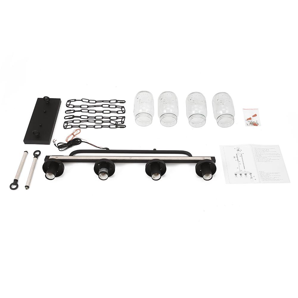 Four Lights • Mason Jar Shades • E26 Medium-base Bulbs (not included) • Hardwired• UL Listed/CE Listed