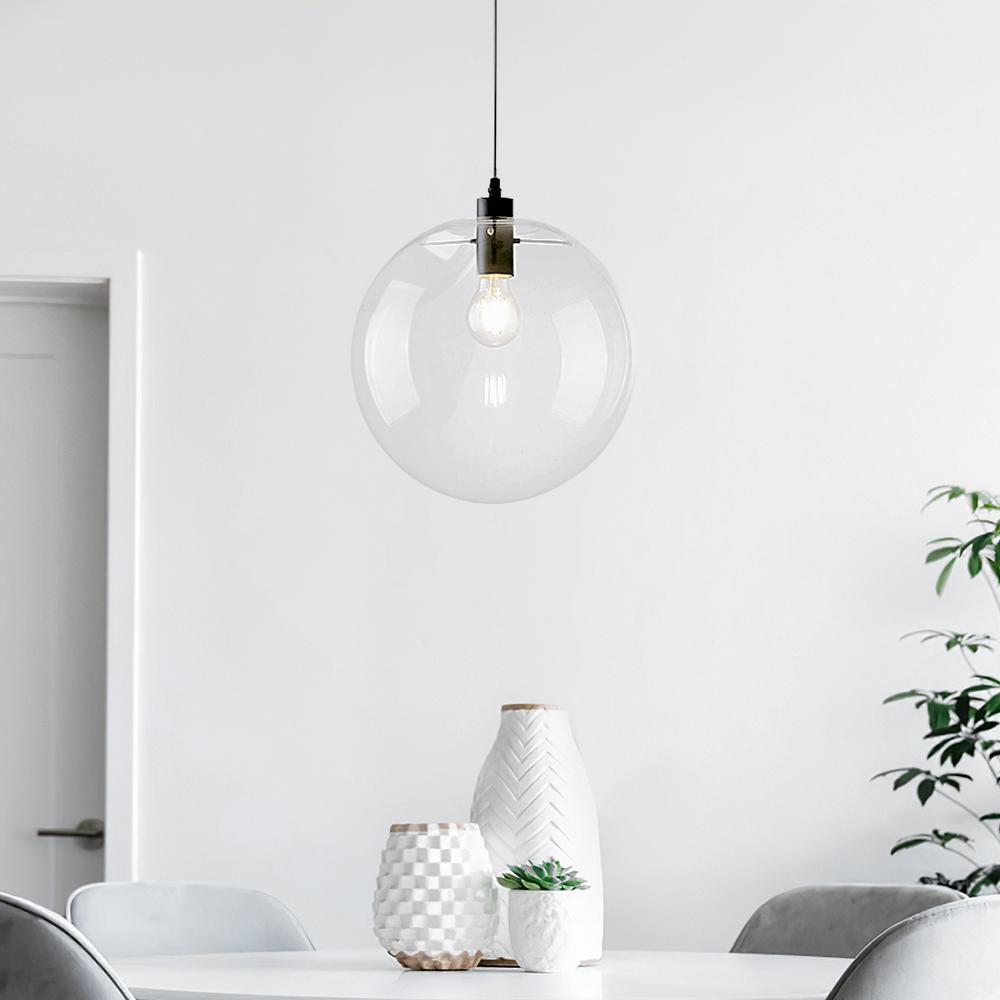 Add a vogue and elegant addition to your room with a minimalist glass globe pendant light. For example, take this glass pendant light: One globe hand-blown glass shade is suspended below, accommodating a 60W E26/E27-base bulb (not included) inside to cast a bright glow best for working and cooking. If needed, you could install a dimmer switch and dimmable bulb (both not including) to adjust the brightness for rest or nap time. Compatible with a sloped ceiling and three sizes in options, you could figure out how to place the minimalist pendant light in clusters based on the arrangement. This glass globe pendant light is adept in lighting up and decorating the living room, bedroom, dining room, entryway, or kitchen island.