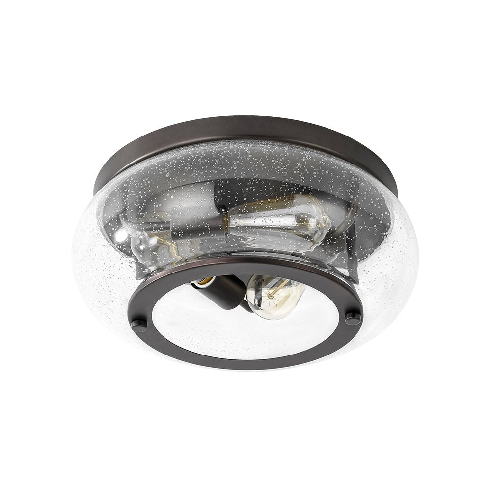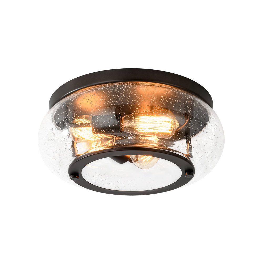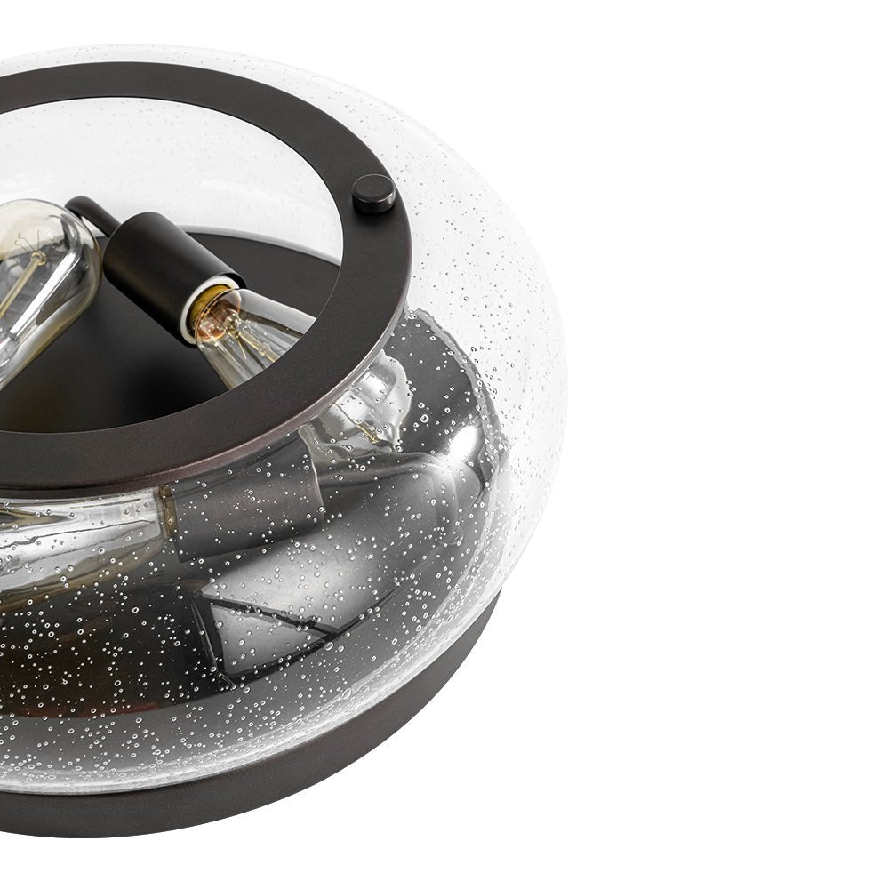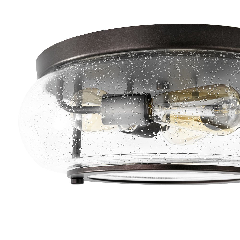 Sleek and stylish, our 3-light glass flush mount light seamlessly blends modern farmhouse and contemporary industrial elements. Featuring a clean circular silhouette with a glossy, curved surface, this oil-rubbed bronze ceiling light is designed with a low-profile oblate shape that sits close to the ceiling, making it an ideal choice for rooms with low ceilings or spaces where height is limited. The clear seeded glass shade adds a vintage-inspired touch, with its subtle speckled pattern bringing depth and visual interest. As the three E26-medium bulbs illuminate, the seeded glass shade creates a soft, inviting glow that beautifully diffuses light. Whether used in kitchens, hallways, entryways, bathrooms, closets, bedrooms, or living spaces, this versatile round ceiling light fixture offers both functional lighting and a touch of decorative charm.