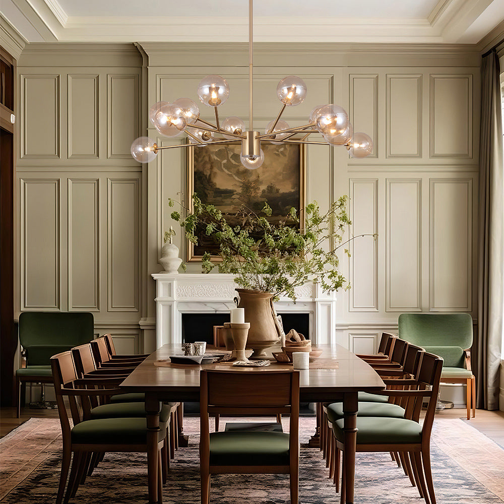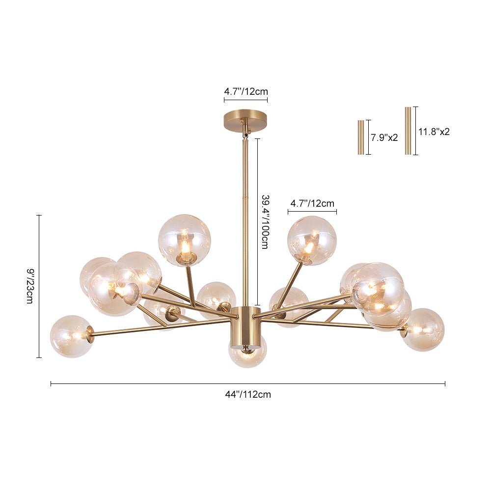 In a whimsical branching bubble design, our modern sputnik chandelier dresses up your living room, dining room, kitchen island, entryway, and foyer in a modern classic style. Crafted by durable metal, this 15-light branching bubble chandelier features a matching round canopy, a slender down-rod, and a cylindrical center that scatters several branches in all directions. At the end of each branch is adorned by the globe glass shade. Inside allowing fifteen G9 bulbs (not included), this modern sputnik branching bubble chandelier shares plenty of charm lighting with the help of smoked or amber glass shades. Available with a dimmer switch and dimmable bulbs (both not included), this globe chandelier adjusts the proper lighting as you wish conveniently. In a size of 50.39 in (128 cm) wide, this 15-light branching bubble chandelier with a striking design will create an artful focal point in your interior.