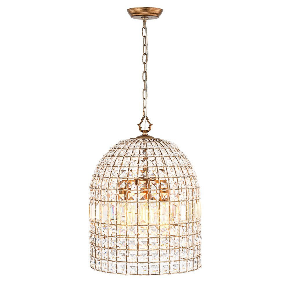 One/Three Lights • Faceted Crystal Accents • Bird Cage Frame • Distressed Gold Finish • E26-Base Medium Bulbs (Not Included) • Hardwired • UL Listed