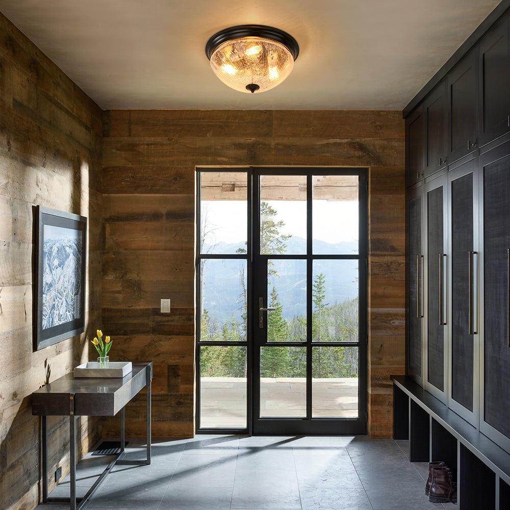 Three Lights ⢠Crackled Glass Shade ⢠Matte Black Finish ⢠E26 Medium-Base Bulbs (Not Included) ā¢Ā Hardwired ⢠UL Listed/ETL