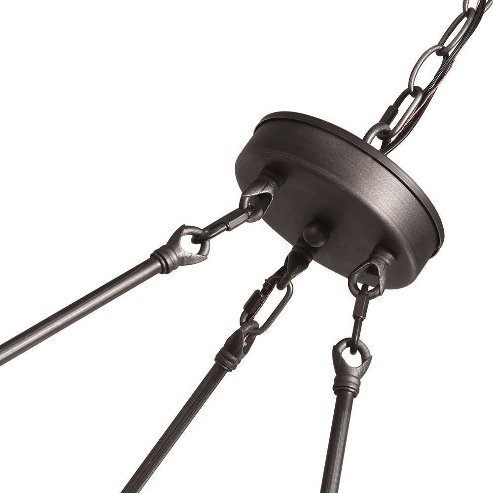 - Height-adjustable wagon wheel chandelier