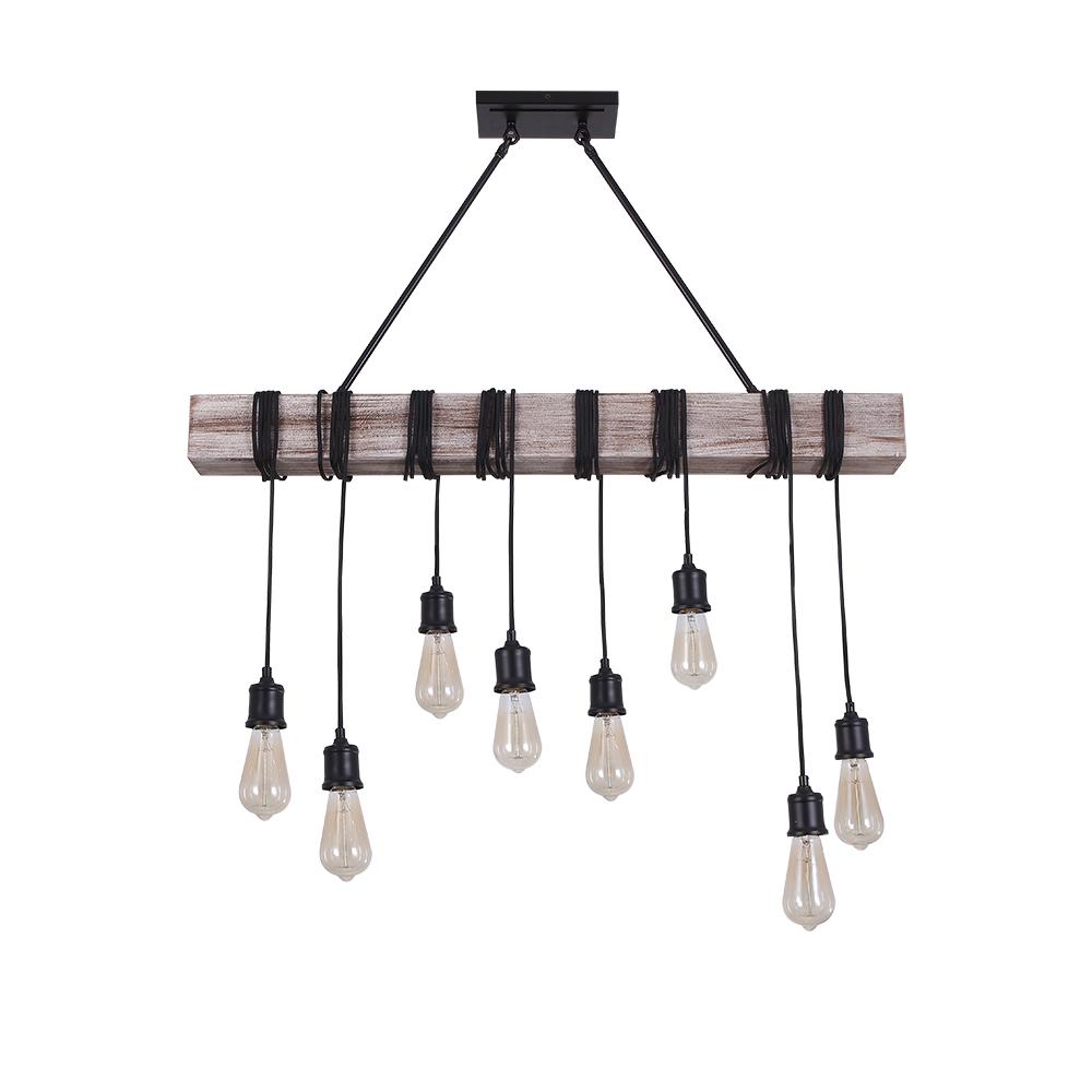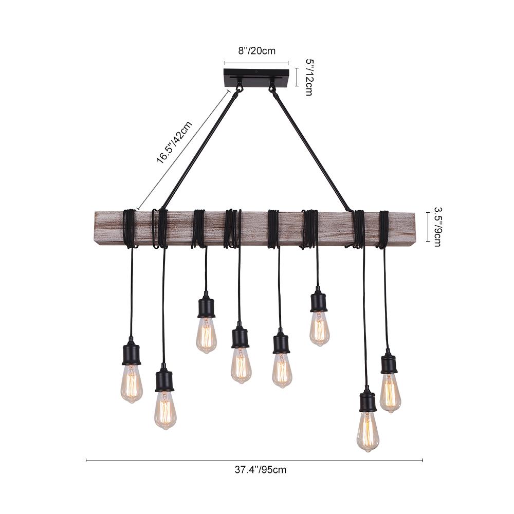 Simple in the design, this wooden wide linear chandelier injects a crude farmhouse charm to an indoor setting. This wide linear chandelier features eight cables with sockets at the end warping around a long distressed wood bar. The exposed E26/E27 medium-base bulbs (not included) highlights the vintage look of this farmhouse island pendant and casts a boost of task lighting. More than a functional kitchen island light, it also creates great results for chic-barn style in your kitchen, dining room, home bar, and those large living areas.