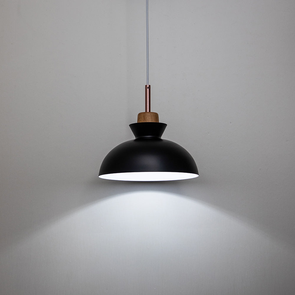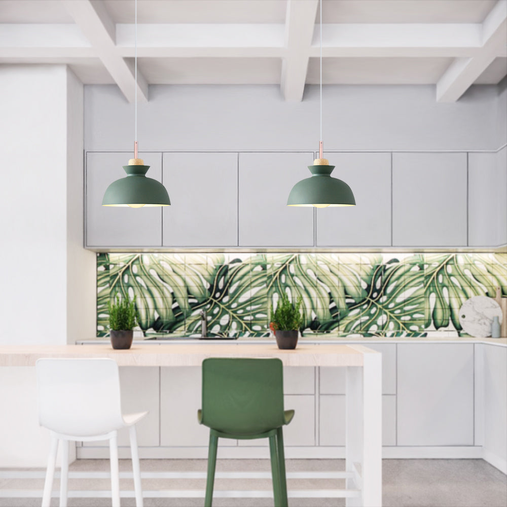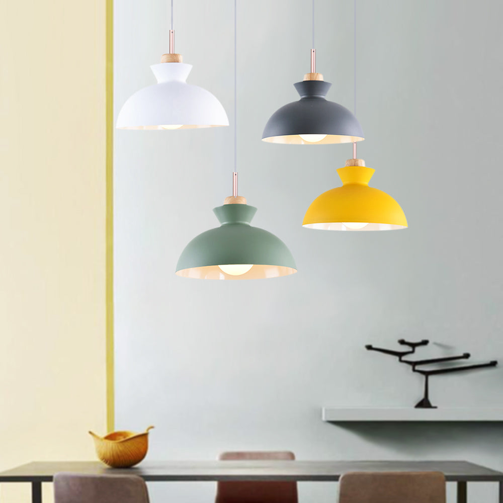 Available in a pop of delightful color options, this Scandinavian lighting adds a fresh retro touch to your modern and contemporary decor. This hanging pendant light showcases a sleek dome shade with wood detail at the top. Accommodating one 60W E26/E27 medium-base bulb (not included), this 1-light dome pendant light provides pleasant lighting with direct downward illumination. Suspended from an adjustable cord and a sloped-ceiling-compatible canopy, this dome pendant light can apply to a variety of installing conditions. This Scandinavian 1-light dome pendant light is a simple yet striking statement piece that cooperates to hang solo or in multiples in a kitchen island, dining room, living room, bedroom, restaurant, or cafe.