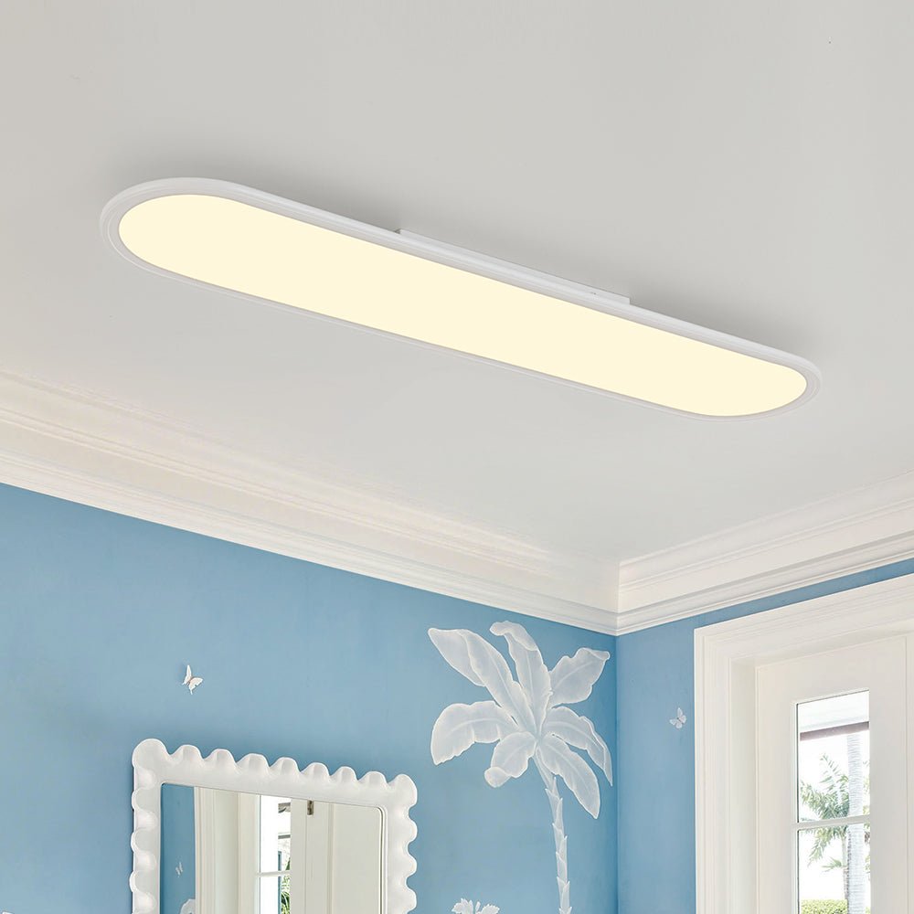 Discover the perfect blend of minimalist design and everyday functionality with our modern LED flush mount ceiling light. Featuring an ultra-thin, elongated oval shape, this fixture brings a clean, streamlined presence to any contemporary interior. Finished in crisp white, it effortlessly complements a range of color palettes and décor styles. When illuminated, the wide board outfitted with energy-efficient LED emit a warm even glow that enhances your space with inviting ambiance. This fixture is also compatible with a standard 110V dimmer switch (not included), allowing for adjustable brightness to suit your mood or setting. Designed for easy installation, this versatile dimmable LED ceiling light fixture is ideal for any room, from living room, kitchen, hallway to office—infusing your space with understated elegance.